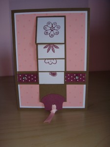 Zusammen mit Marion, Annemarie, Heike, Ela und natürlich Tina hatte ich einen superlustigen Nachmittag. Wir haben viel gelacht und natürlich auch ganz fleißig gebastelt. Und zwar eine Wasserfallkarte, eine wunderhübsche Blumentopfverpackung und ein tolles Täschchen. Die neuen Farben Himbeerrot und Wildleder gaben hier ganz klar den Ton an. Hier mal die Gesamtergebnisse: