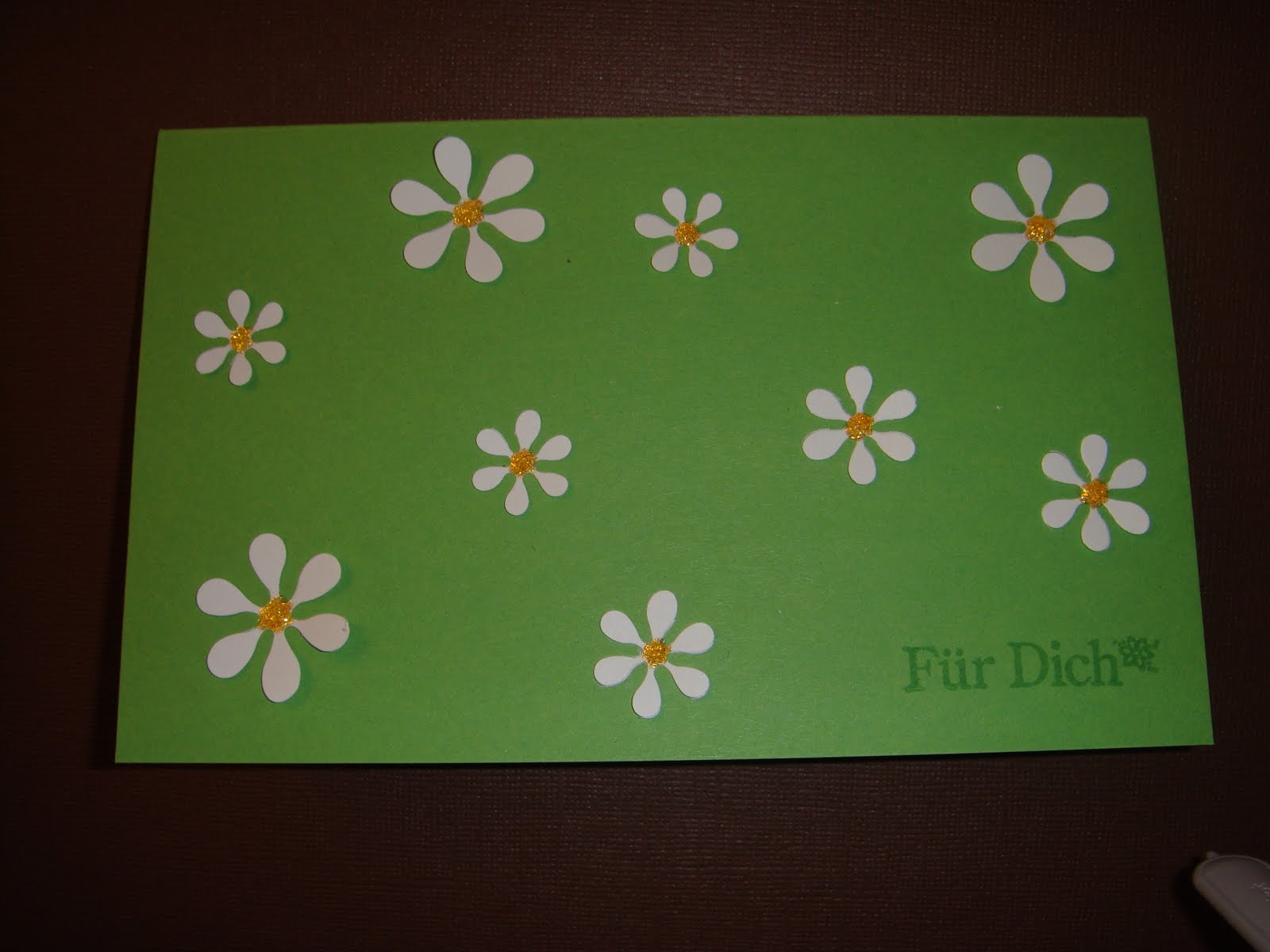 Die Mitte der Blümchen hab ich mit gelben Stickles beglittert.
