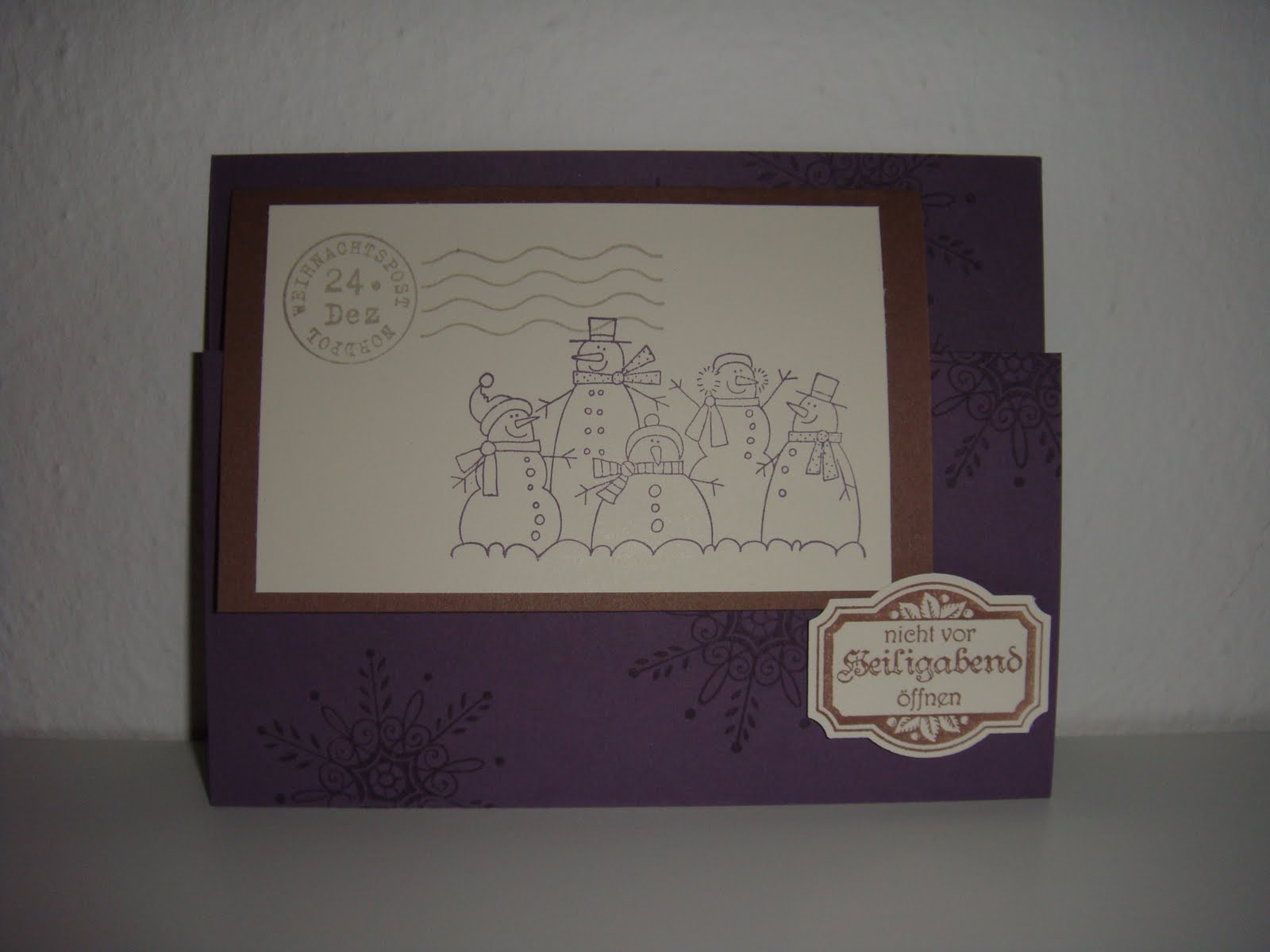 Supertolle Karte! Hab die Farben abgewandelt, die meisten haben sie mit hellblau statt lila gemacht. Aber mit Cardstock in hellblau hab ich mich so eingedeckt, da wollte ich was machen, was ich daheim nicht so nachbasteln kann.