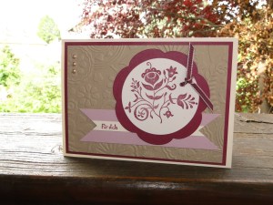 Die Farben sind Vanille, Savanne, Himbeerrot und Pflaumenzart, der Hintergrund ist mit der Cuttlebug geprägt.