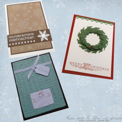 Ich hoffe, Ihr hattet alle ein schönes Fest! Vor Weihnachten war es auf einmal etwas stressig, deshalb hab ich es gar nicht geschafft, alle Weihnachtskarten zu zeigen, die ich gebastelt hab. Aber dafür bekommt Ihr jetzt ein paar zu sehen. Erstmal die, die ich bekommen hab (nur die selbstgebastelten, die anderen sind jetzt glaub ich zumindest optisch nicht so spannend :)):