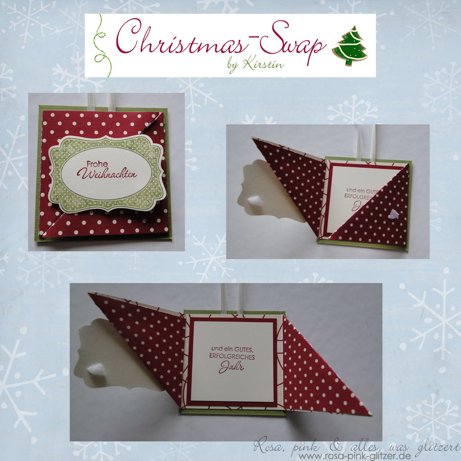 …meine Anhänger-Swaps gibt es heute zu sehen. Aber als erstes: Die wunderhübsche Weihnachtskarte, die ich von Christine bekommen habe und die sich jetzt wieder zu den anderen aufs Fensterbrett gesellen durfte: