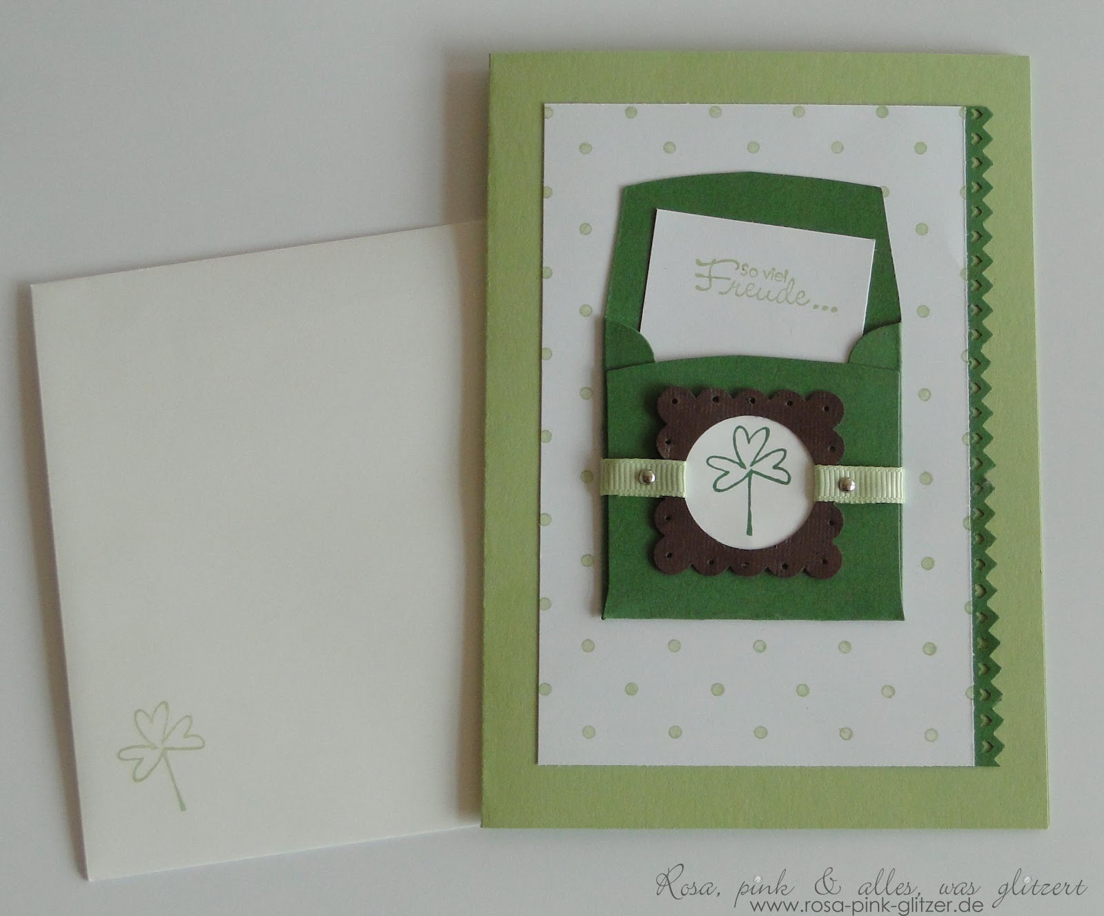 Seit kurzem darf ich mich stolzer Besitzer des wunderschönen Sets „Every little bit“ nennen. Seit es im Katalog ist, schleich ich drumrum. Und nun endlich durfte es bei mir einziehen. Juchu! Im Katalog hab ich auch gleich eine schöne Idee entdeckt, die ich etwas abgewandelt gleich mal ausprobieren musste. Und wie schön, die Karte paßt auch noch zur aktuellen Challenge Nr. 48 bei The Friday Mashup. Eigentlich wollte ich die beiden Aufgaben verknüpfen, aber ich bin nicht ganz sicher, ob ich das Thema „St. Patrick’s Day“ richtig getroffen hab, in Deutschland feiern wir den ja nicht. Aber mindestens zwei Stanzen hab ich benutzt – also Haken dran, die Karte darf mitspielen.