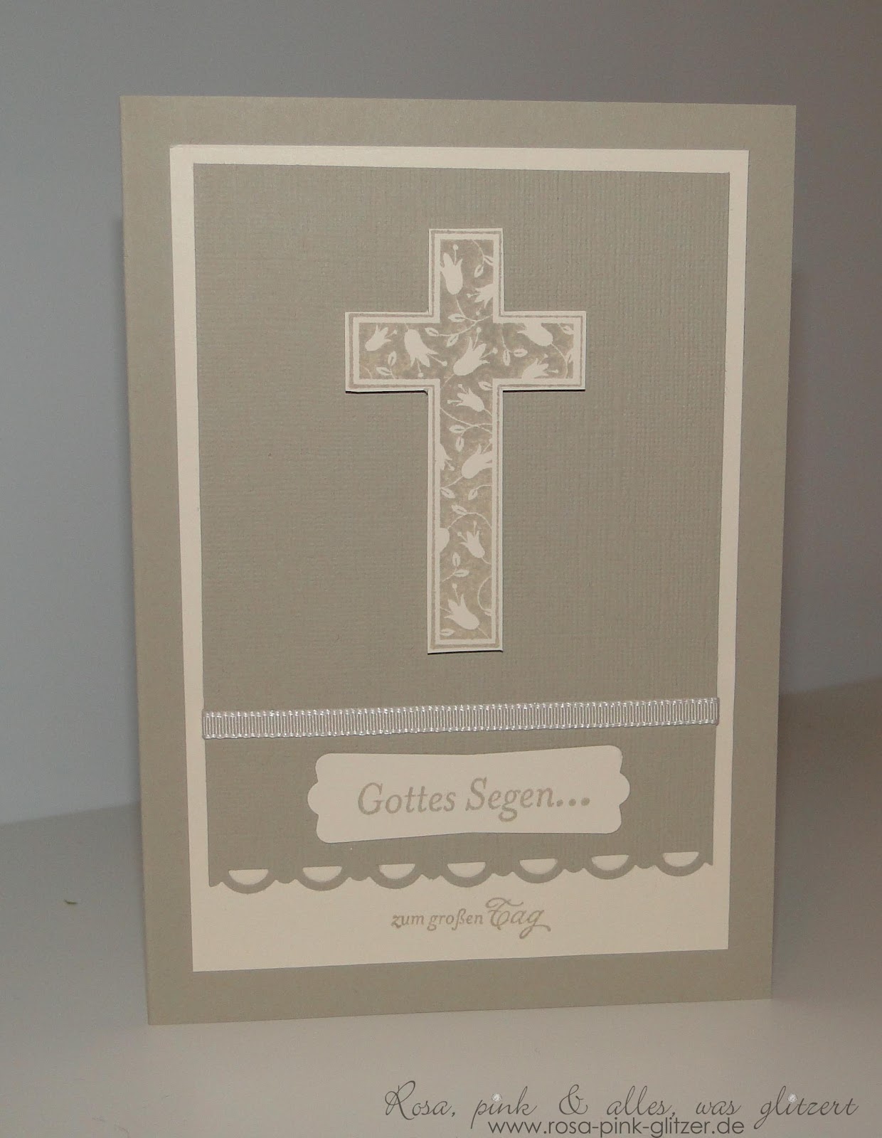 …das war letztens mein Auftrag. Naja, eigentlich sogar zwei Karten. Von meiner Mama für sie und ihre Freundin in Auftrag gegeben. „Ach ja, und wir brauchen sie übermorgen.“ Wow, da war ich erstmal ideenlos. Mein erster Griff war natürlich zum Stempelset „Segenswünsche“, das es leider nicht mehr gibt und das ich auch nie hergeben kann, weil gerade meine Eltern immer wieder mit so „eigenartigen“ Wünschen kommen. Falls Ihr Euch fragt, was eine Primiz ist: Die erste Heilige Messe eines (katholischen) Priesters nach der Priesterweihe.