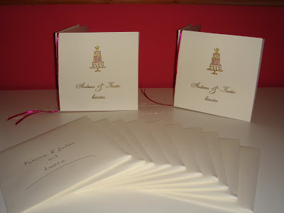 So richtig begonnen hat eigentlich alles 2007 mit einem Heiratsantrag. Denn damit begann auch die Suche nach Ideen und Inspirationen. Es dauerte nicht lang, und ich landete in einem Hochzeitsforum. Huch, was es da alles gab. Auch die ein oder andere Hochzeitszeitung kam mir in die Finger und in einer entdeckte ich ein Motiv, bei dem mein Herz sofort einen Sprung machte. Eine wunderbare kleine Torte mit einem Krönchen darauf. Und das ganze war embosst. Ähm… embosst??? Ja, so stieg ich ein in die kreative Welt. Nach ein wenig Recherche wusste ich dann auch recht schnell, was Embossing eigentlich ist. Und mein Gedanke war „Nee, das fängst erst gar nicht an. Das endet nur in Frust, weil es eh nicht klappt“. Aber dieser Tortenstempel… Hach, er ließ mich nicht los. Und so begann ich, das vollständige Equipment zu bestellen: Stempel, Stempelkissen, Embossingpulver, Föhn, Papier… Im Nachhinein wäre es wahrscheinlich doch günstiger gekommen, die Karten einfach drucken zu lassen. Aber dieser Stempel… Ich hatte wahnsinnig viel Spaß beim Gestalten der Einladungen und – unglaublich für mich – das embossen klappte! Und wie! Ich war bei jedem Mal wieder neu verzaubert, wie das Pulver so dahinschmolz und diesen wunderbaren Effekt erzeugte. Und ich fand auch immer tollere Sachen, die man kaufen und machen konnte. Trotzdem war die ganze Hochzeitspapeterie eigentlich doch recht schlicht:
