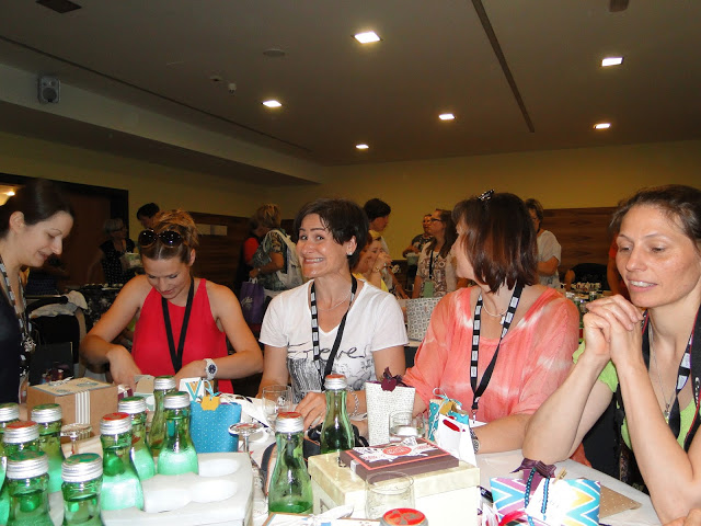 Nachdem wir unsere Plätze im Saal gesichert hatten, ging es ans Teamschenklis tauschen.