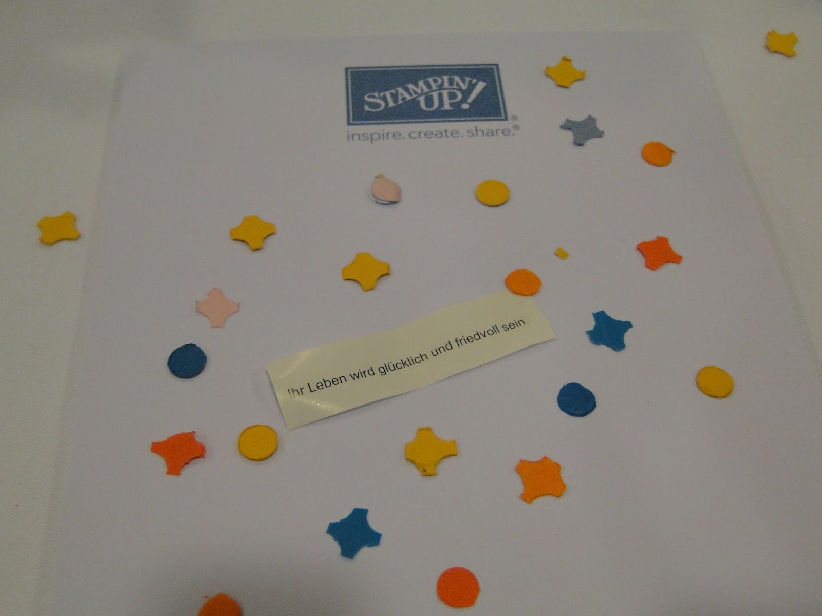 Stampin up hatte auch frohe Botschaften in Form von Glückskeksen für uns. Und mal ehrlich – bei so einem Spruch kann ja fast nichts mehr schief laufen, oder?