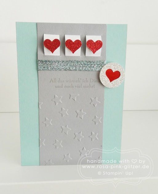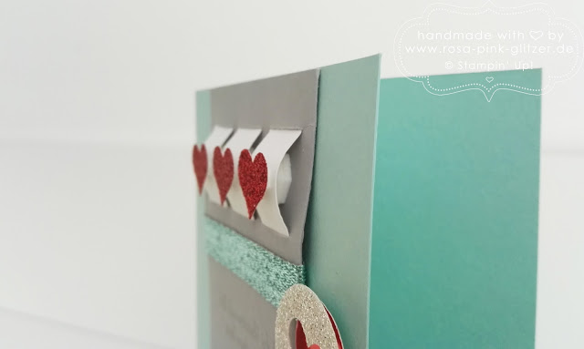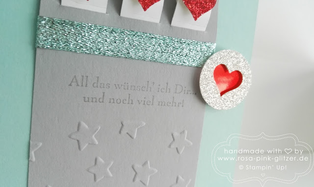 Das Glitzerband in Aquamarin ist ein Traum, oder? Findet Ihr im neuen Frühjahr-/Sommerkatalog von Stampin‘ Up! 😉