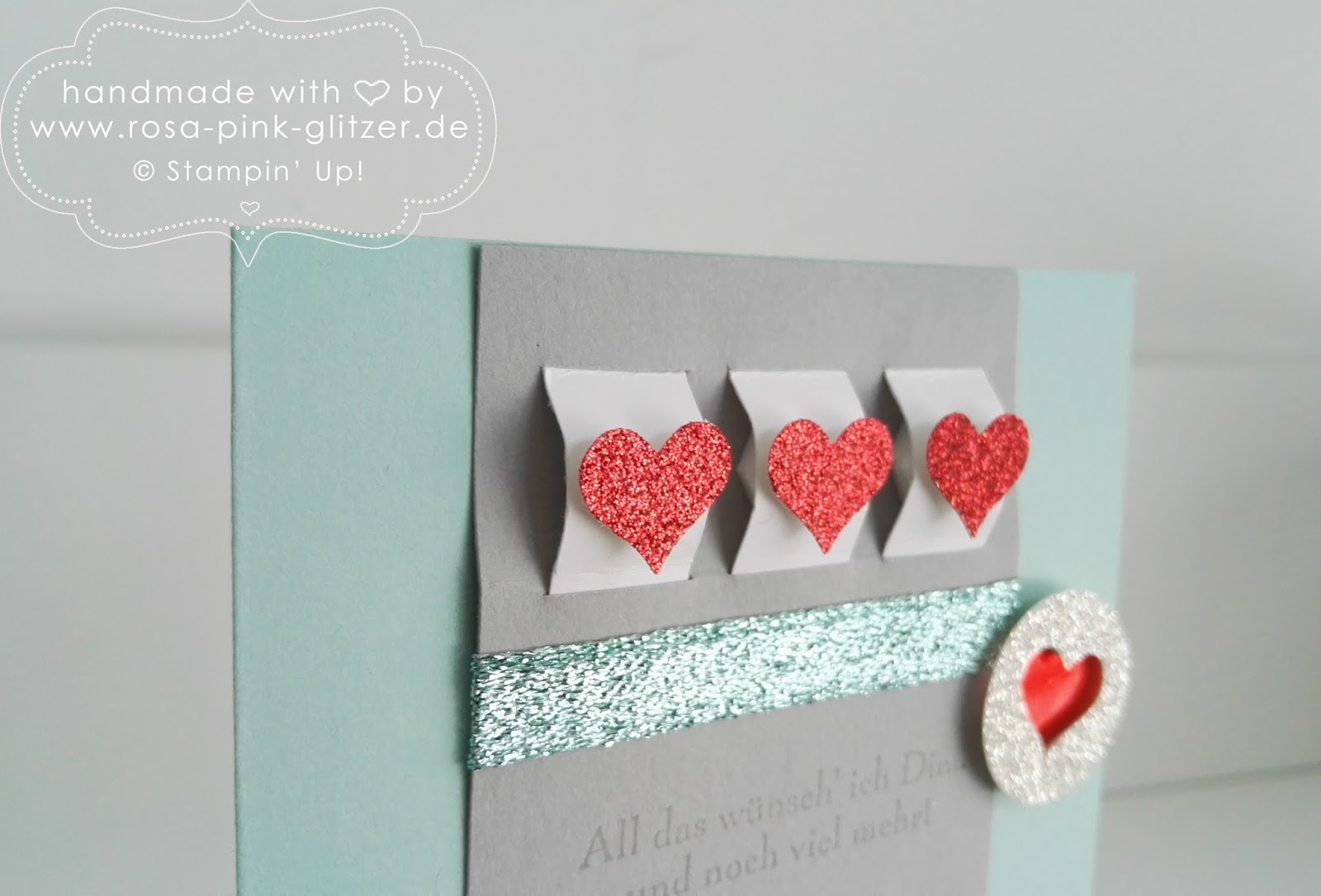 Das Glitzerband in Aquamarin ist ein Traum, oder? Findet Ihr im neuen Frühjahr-/Sommerkatalog von Stampin‘ Up! 😉
