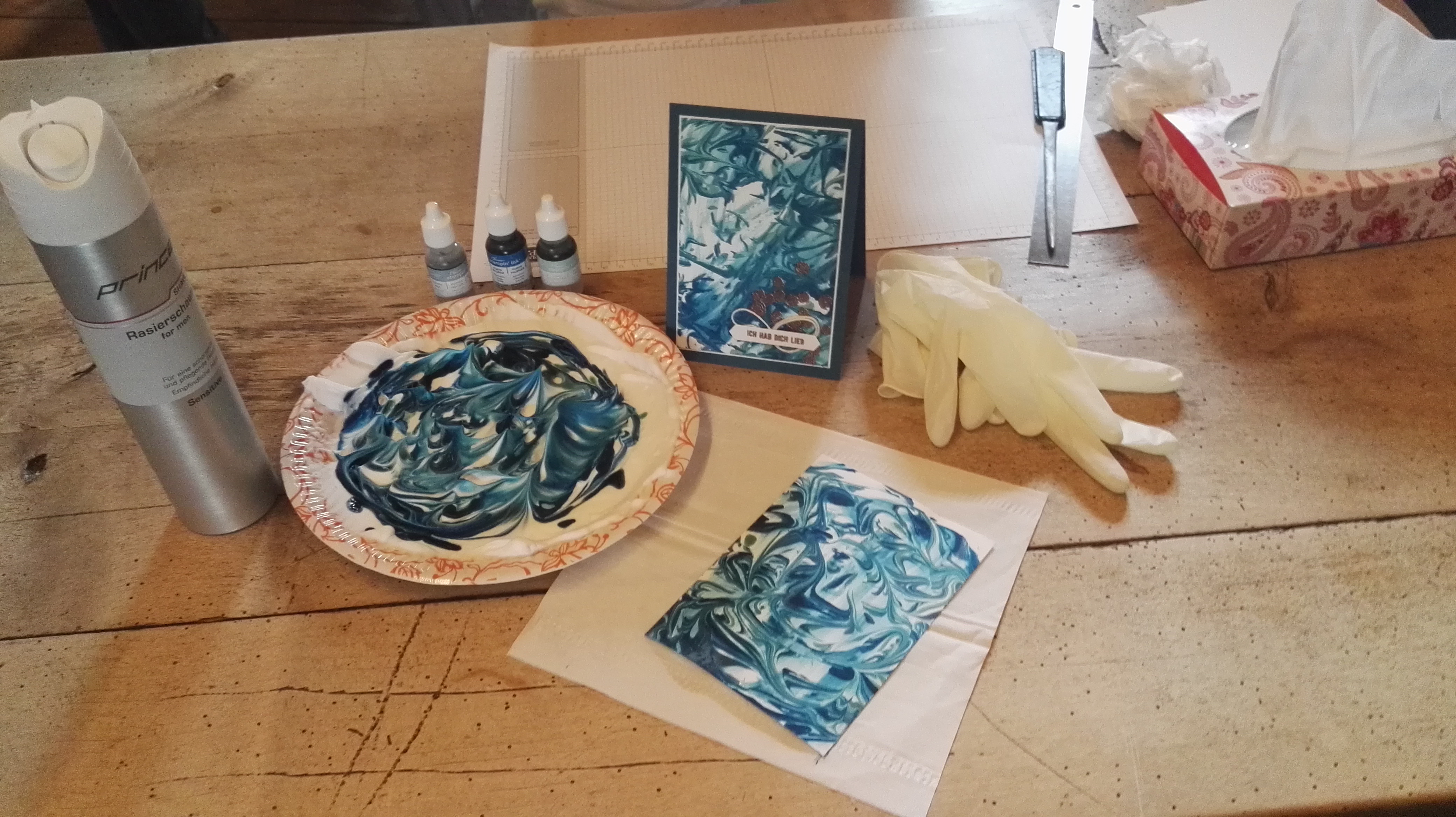 Natürlich gab es auch einen kreativen Teil. Vier liebe Mädels zeigten uns, was eine Shadow Box ist und wie sie funktioniert, was man mit Washi alles machen kann, wie einfach ein Picknickkörbchen funktioniert und was für eine wunderbare Matscherei die Rasierschaumtechnik ist.