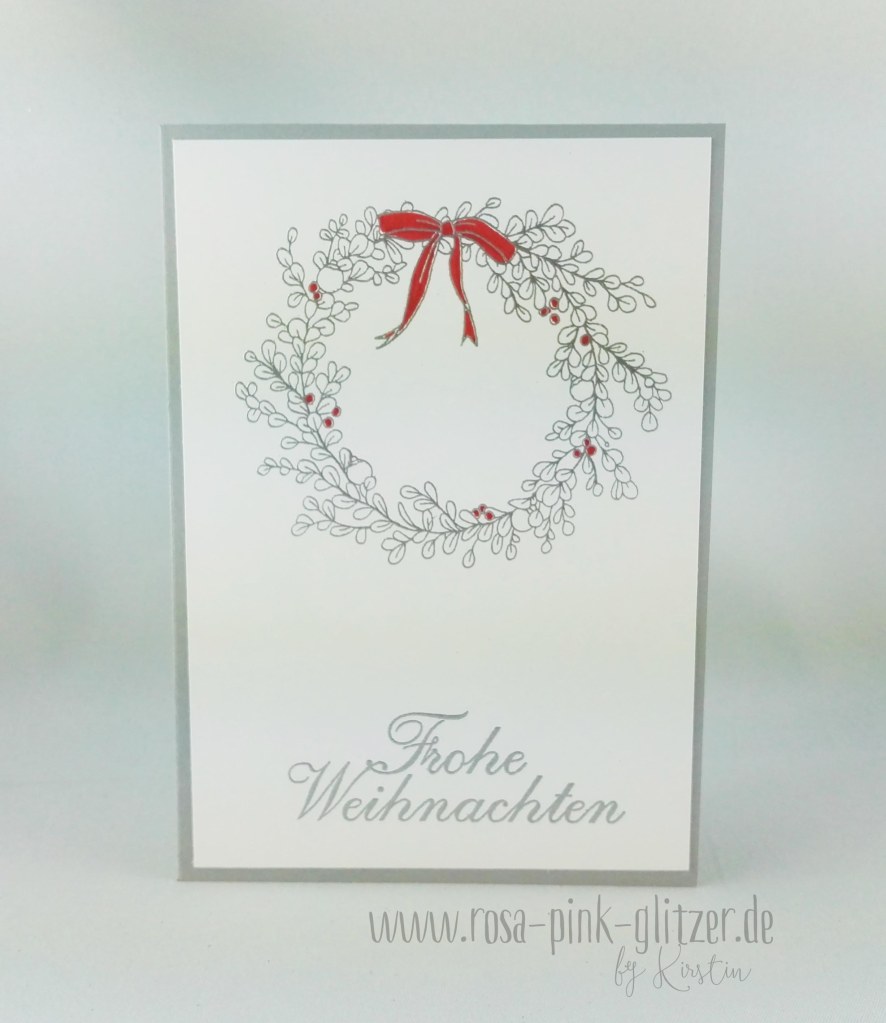 Einmal sehr nah am Original nur in einem anderen Format. Hier hab ich in Silber embosst und mit Glutrot Akzente gesetzt, alles dann auf Cardstock in Schiefergrau.