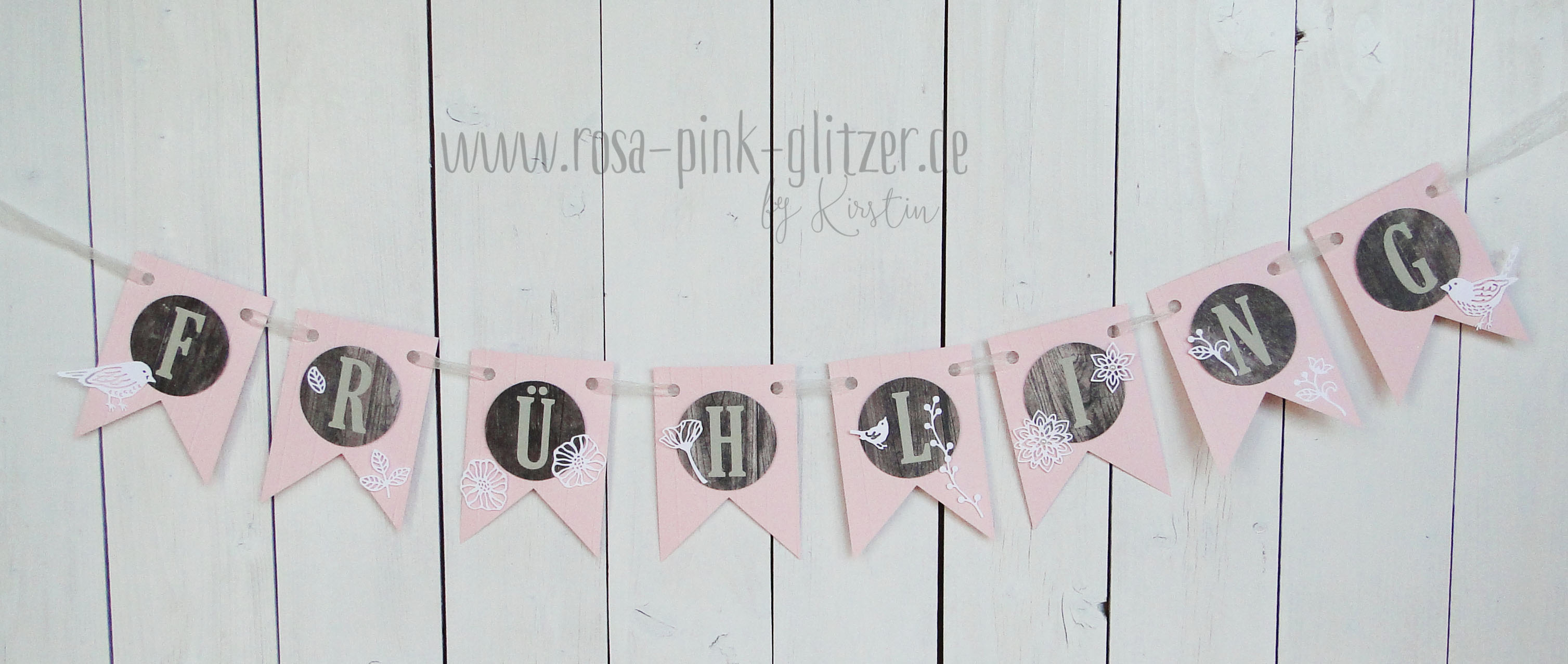 Ich wollte ein wenig Frühling ins Haus holen. Jeden dritten Tag frische Tulpen wäre auch eine Option. Die geht aber irgendwann ganz schön ins Geld, denn wenn dann muss es ja ein richtig großer Strauß sein. So hab ich also eine Wimpelgirlande gebastelt, die auch Frühling ruft: