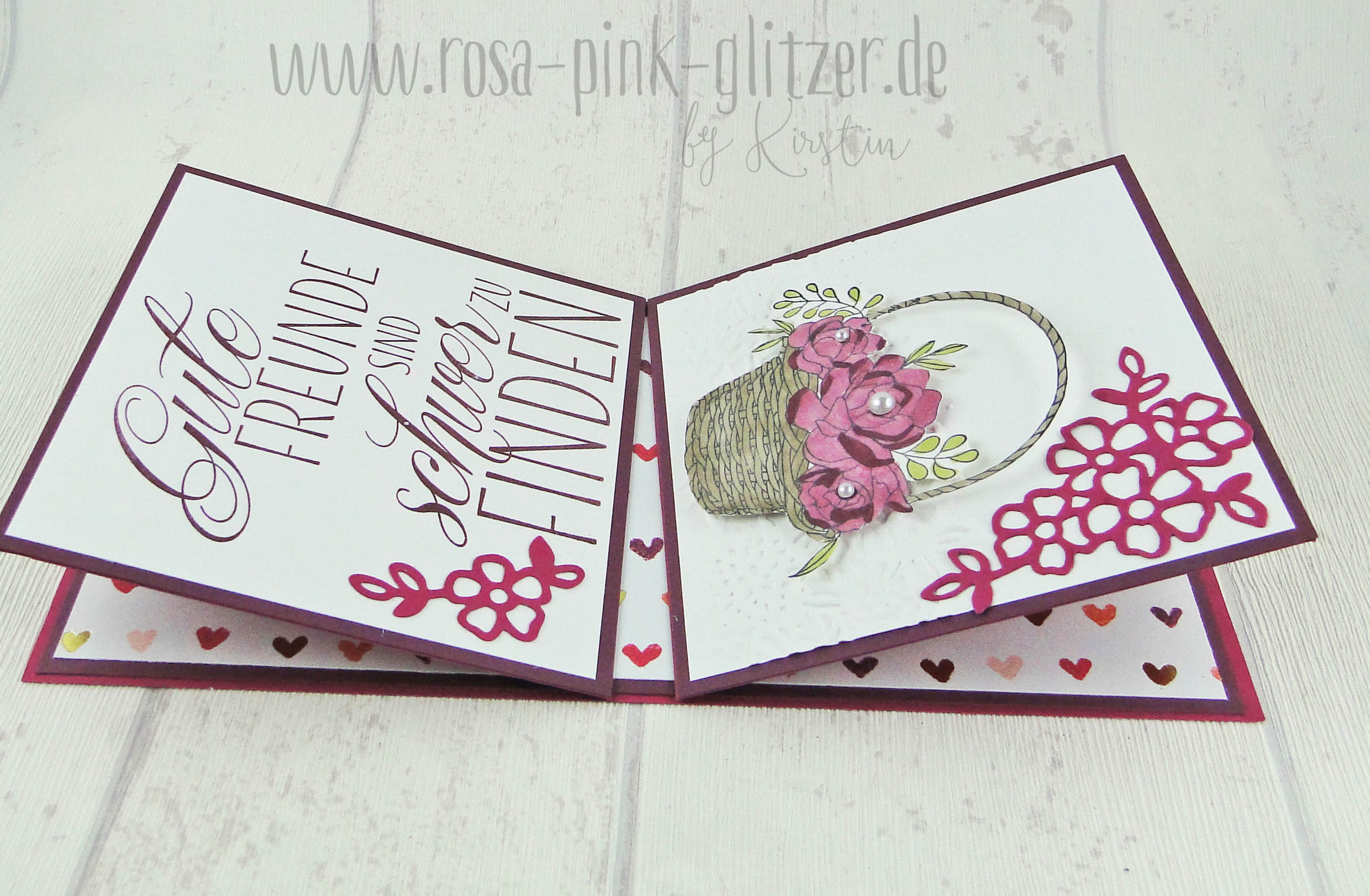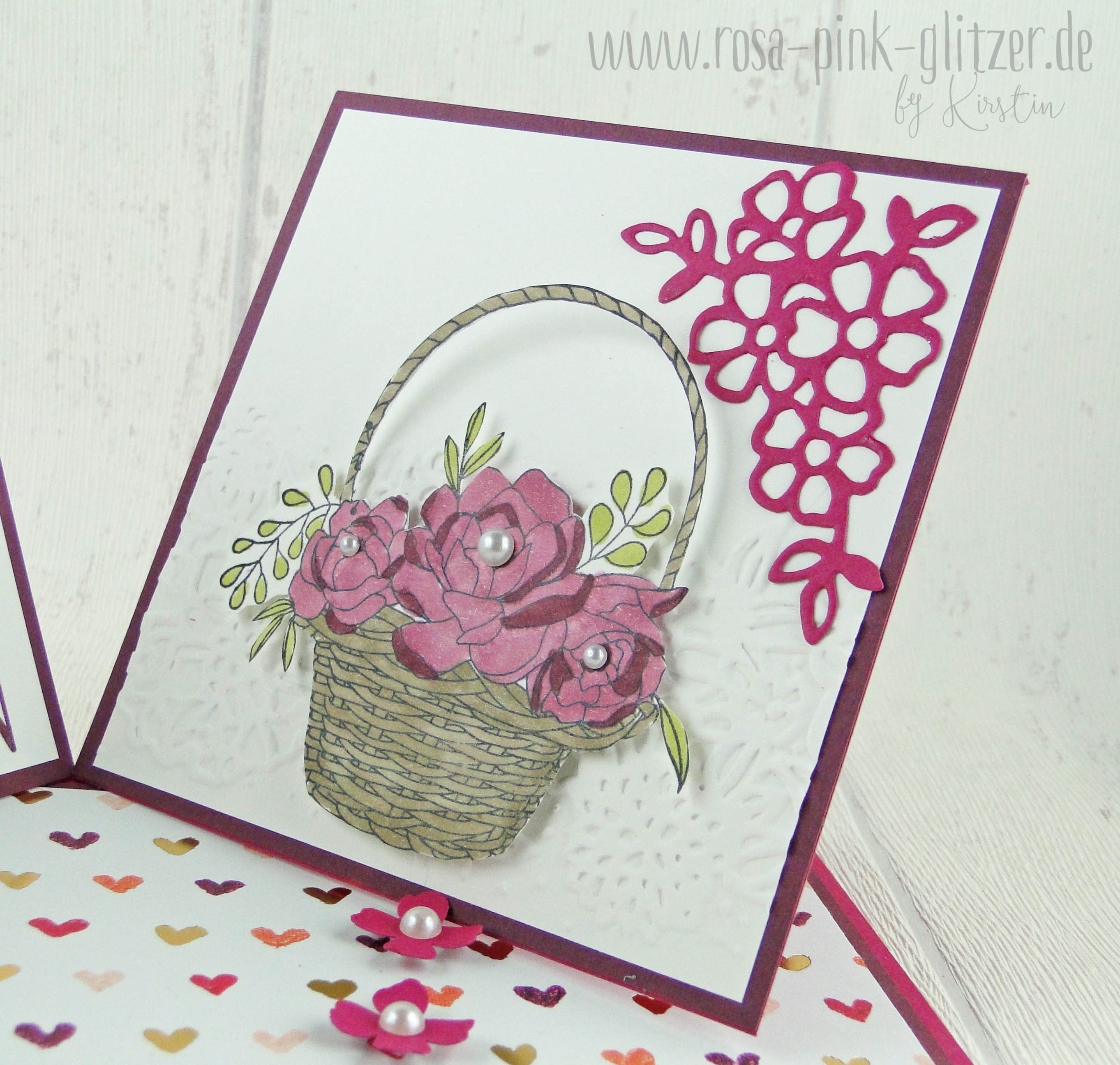 Sie lässt sich wunderbar zusammenlegen und kann in einem normalen Briefumschlag verschickt werden. Auch fantastisch geeignet, um ein Foto mit auf eine Seite zu kleben. Oder einen Blumenkorb?
