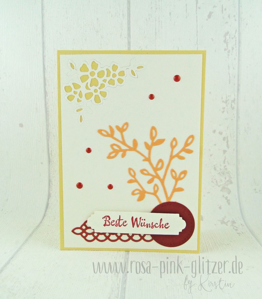 Tja, manchmal ist es so: Die Farben liegen einem nicht. Da sitzt man am Basteltisch, die Vorstellung ist wunderbar und man macht und tut und klebt – und am Ende guckt man und denkt sich „Hm, ok, so sieht das jetzt also aus…“. So ging es mir mit dieser Karte: