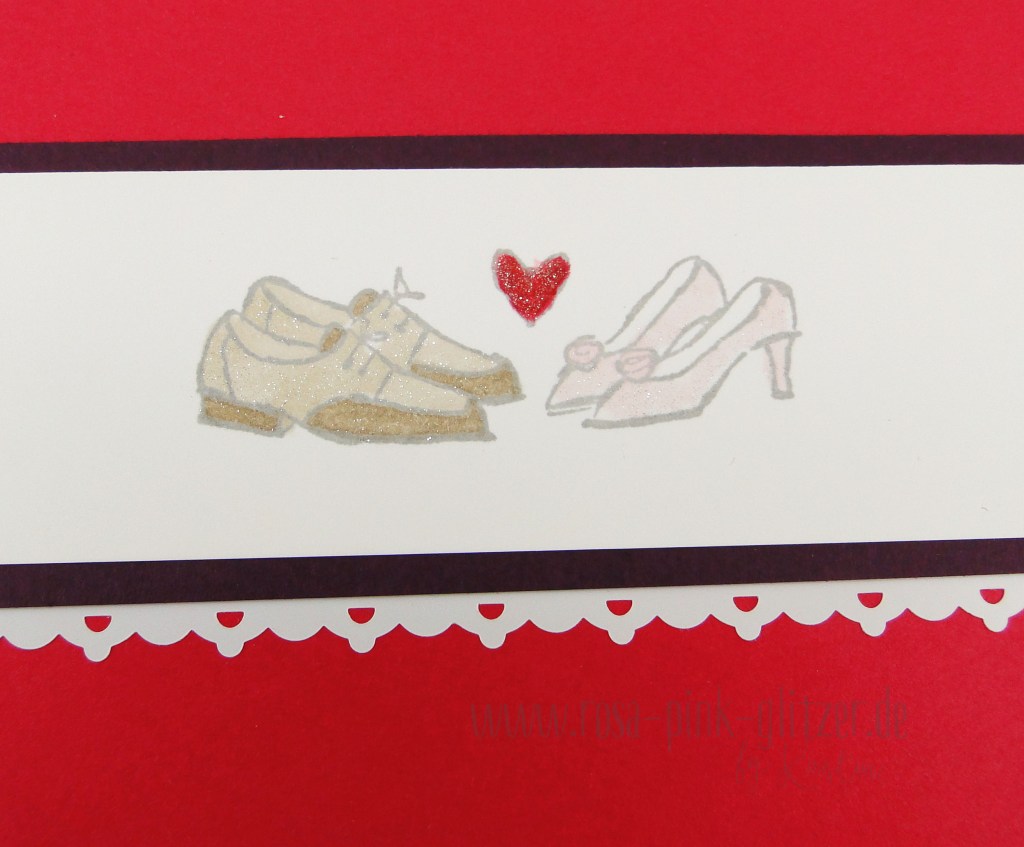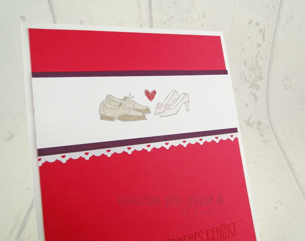 Ich zeige Euch heute eine schlichte Hochzeitskarte in Kussrot (wie passend 😉 ).