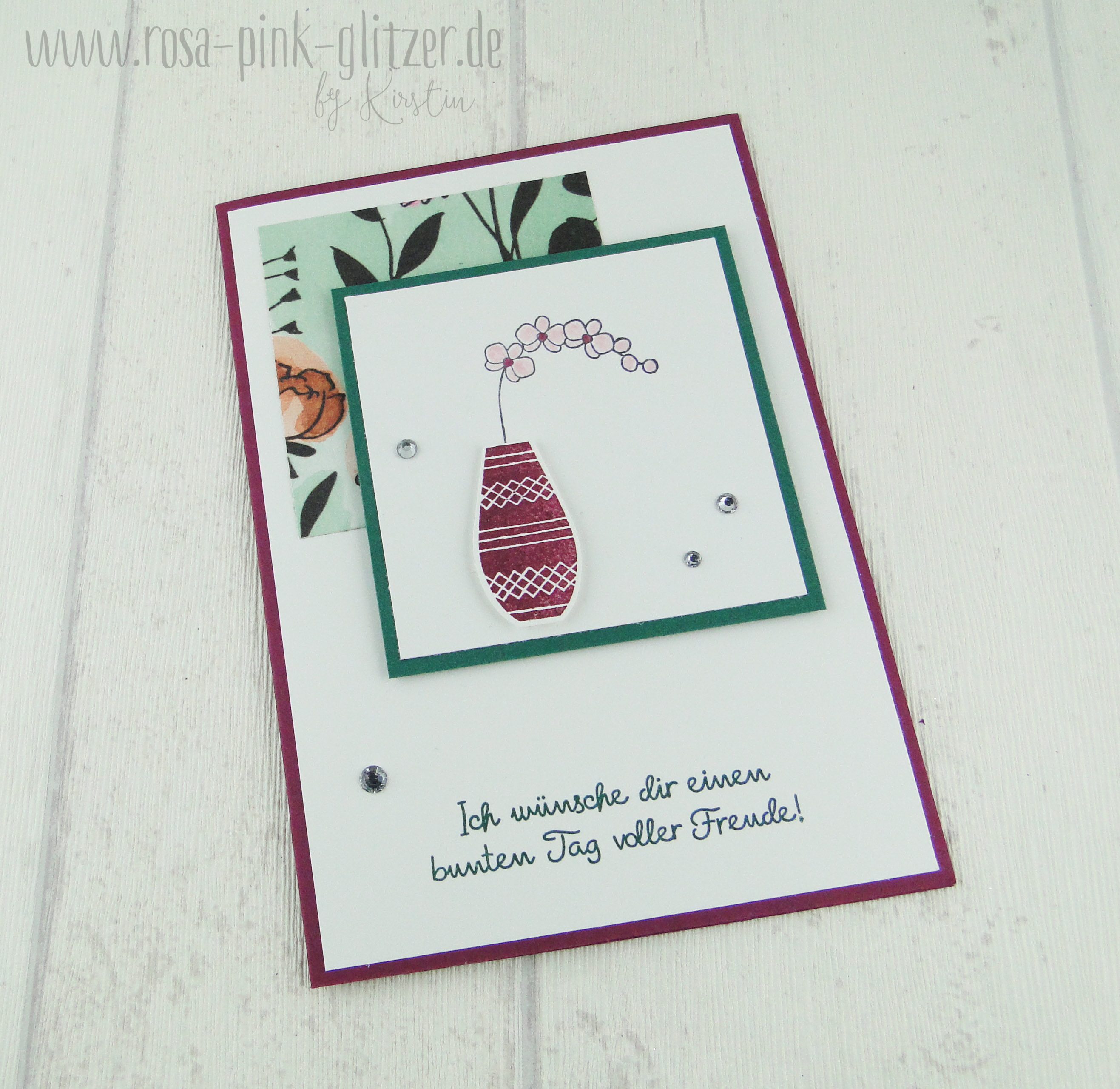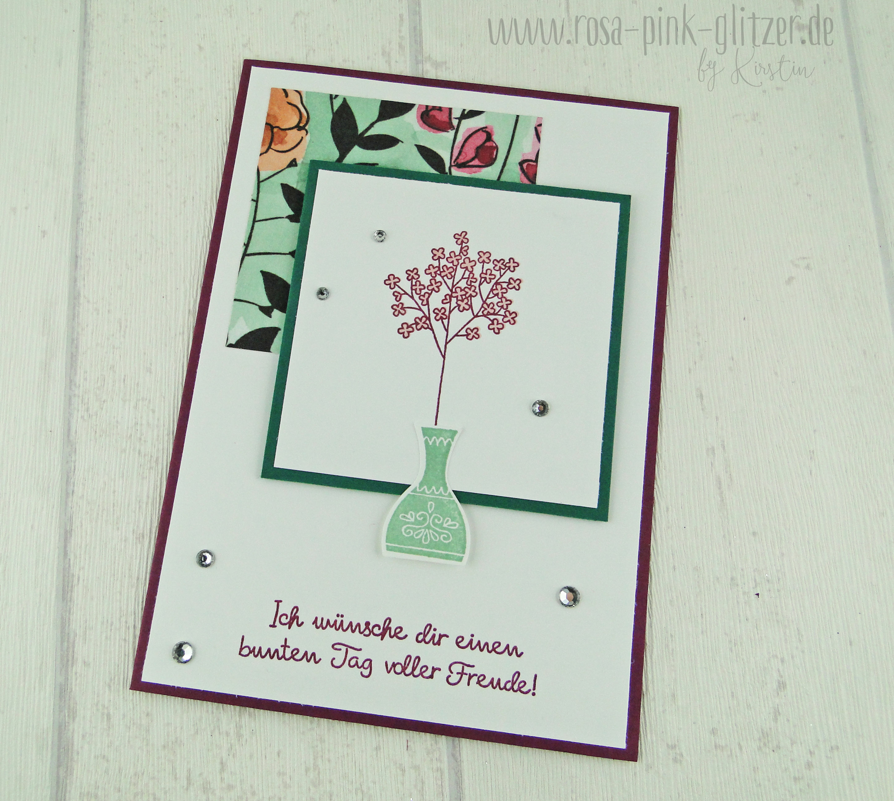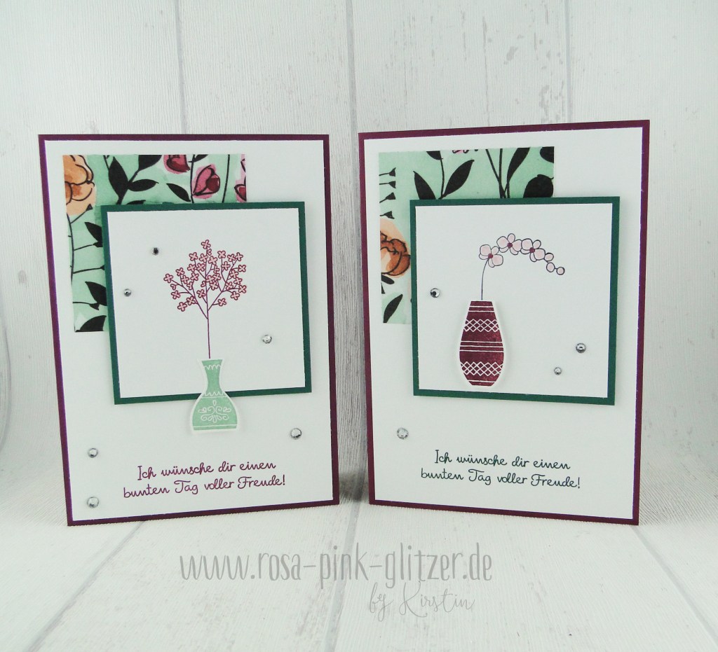 Hach, dieses Vasen-Set ❤ Das hat es mir echt angetan. Hier in Verbindung mit dem wunderbaren Designerpapier. Und natürlich ein wenig Bling Bling.