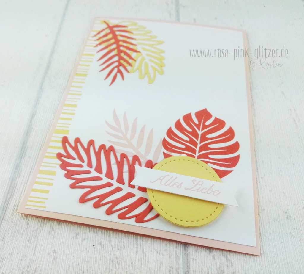 Auch hier habe ich wieder zum Stempelset Tropenflair aus dem aktuellen Stampin up Katalog gegriffen. Gerade, weil die Farben so untypisch für das Set sind gefällt mir die Kombi irgendwie so gut.