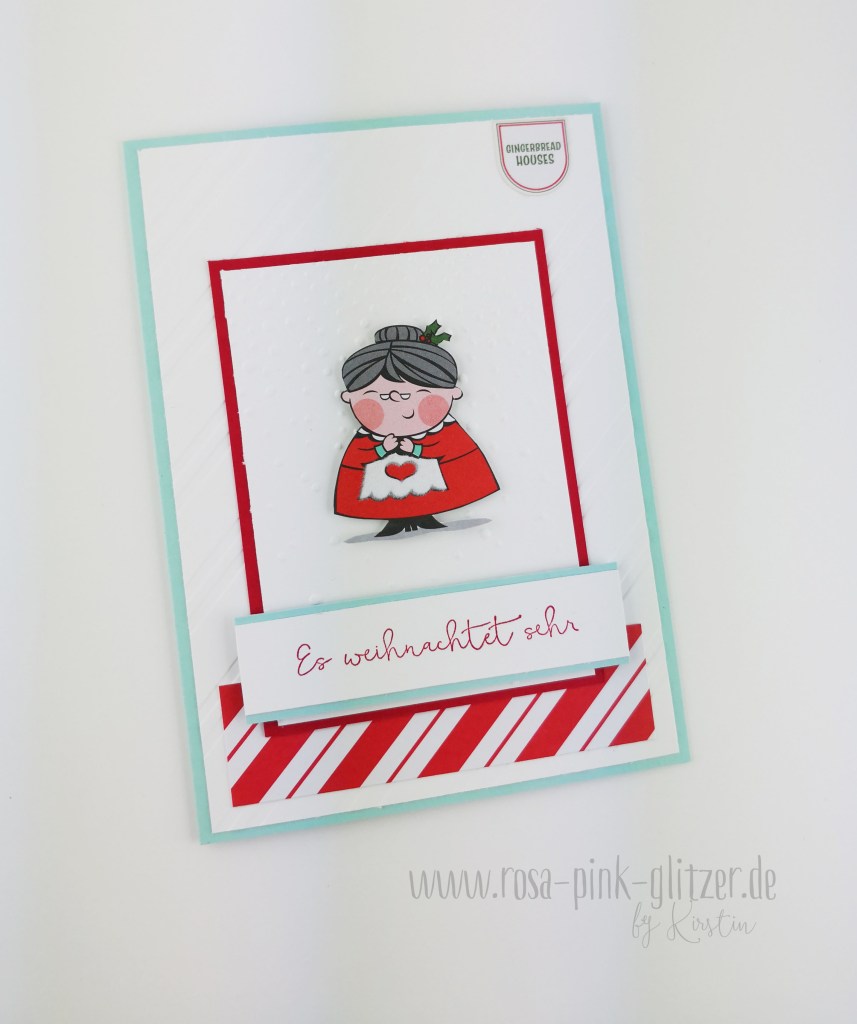Die Kombination Aquamarin – Glutrot – Flüsterweiß finde ich einfach schön für Weihnachten. Passte auch hier sehr gut.