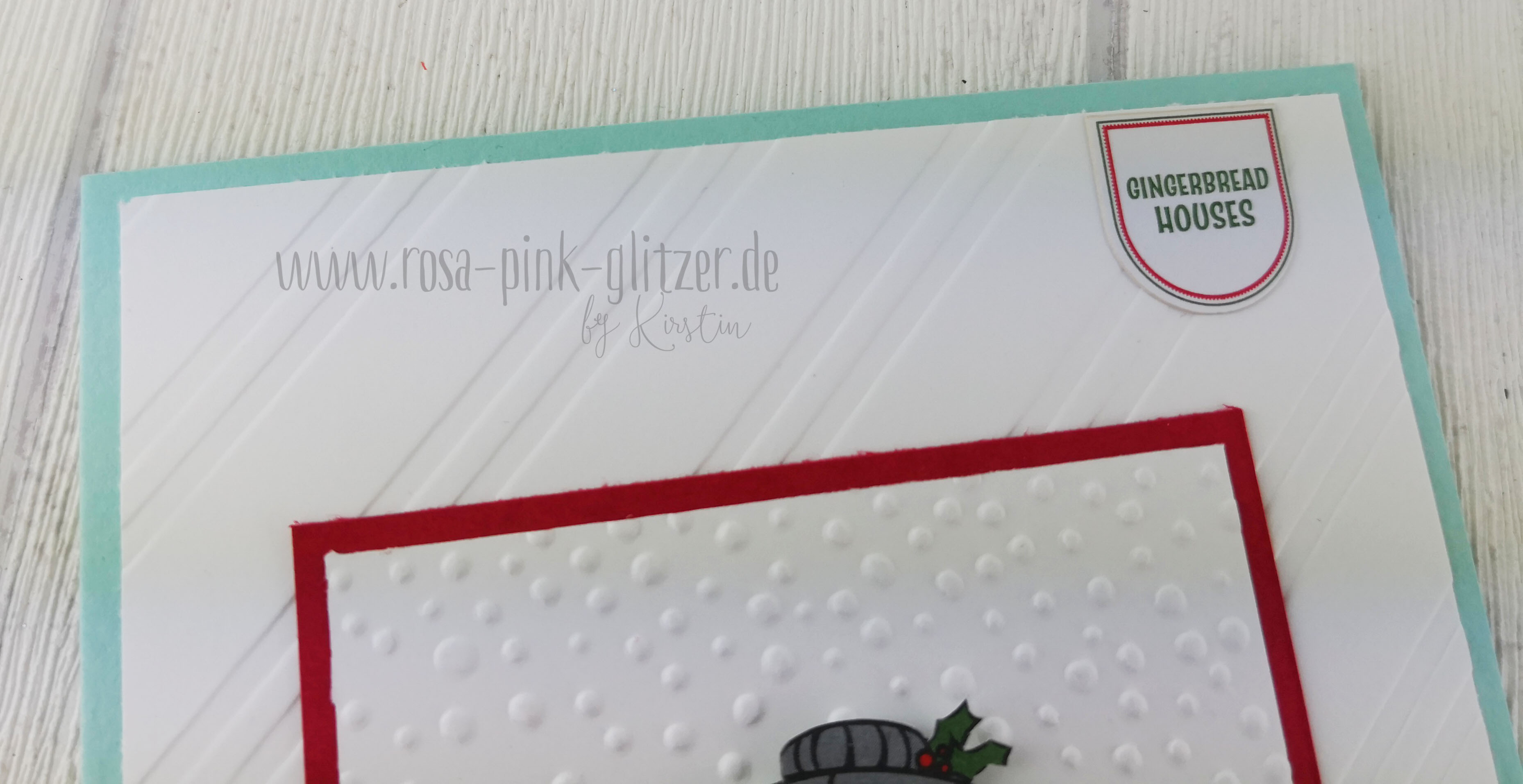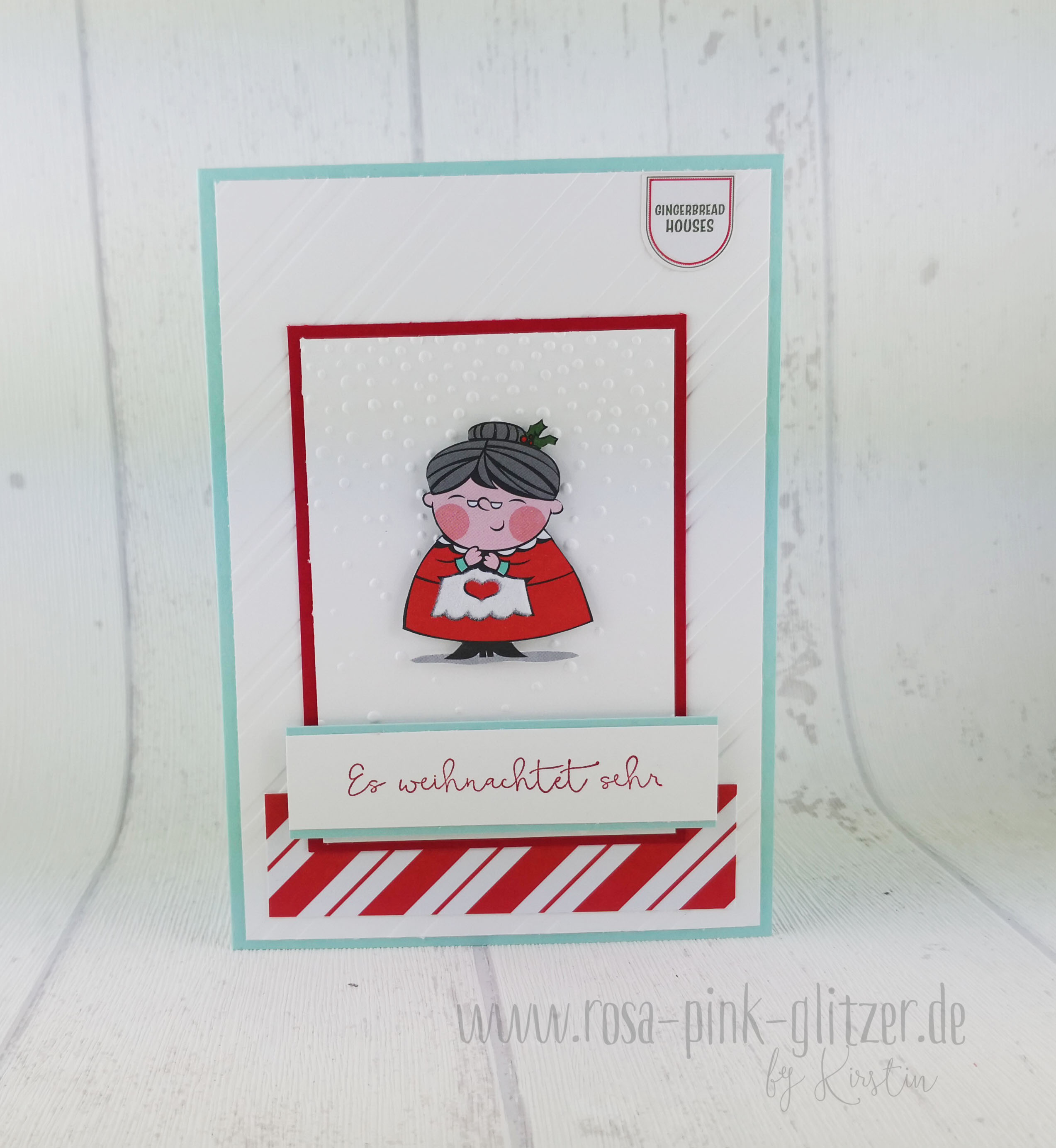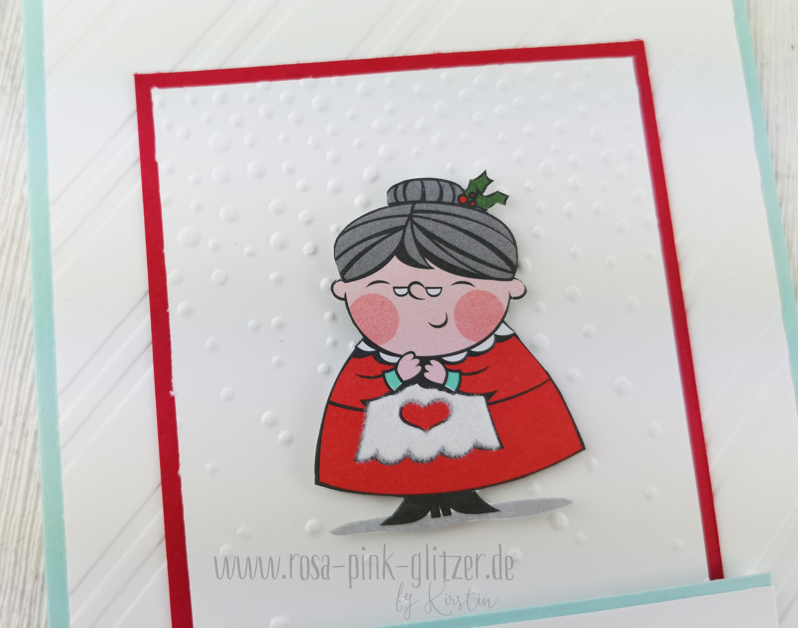Die Kombination Aquamarin – Glutrot – Flüsterweiß finde ich einfach schön für Weihnachten. Passte auch hier sehr gut.