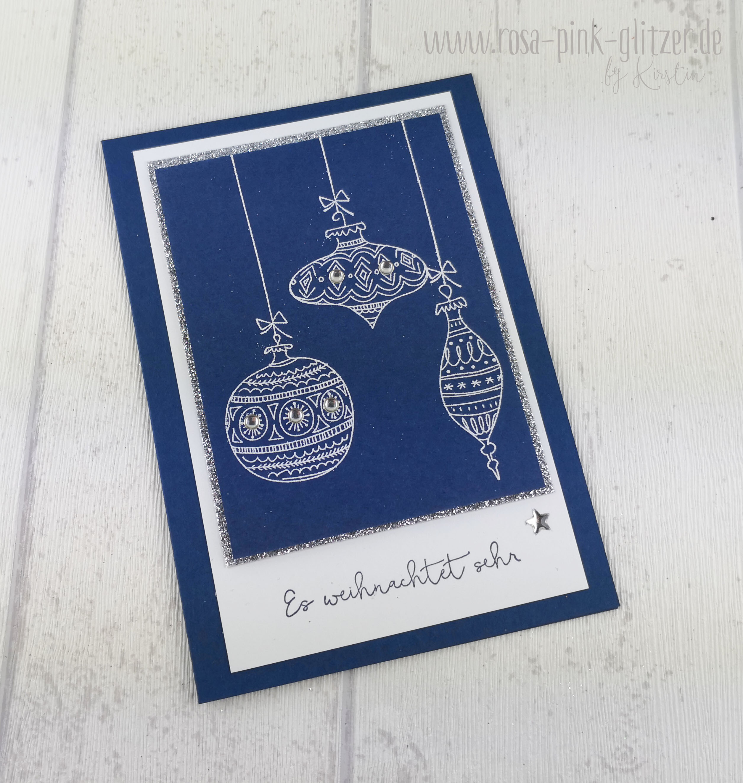 Die Kugeln stammen noch aus dem letzten Jahr. Ich habe sie in weiß auf Marine embosst.