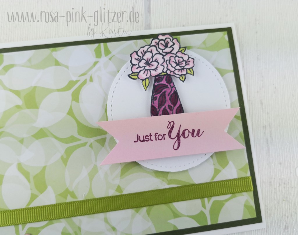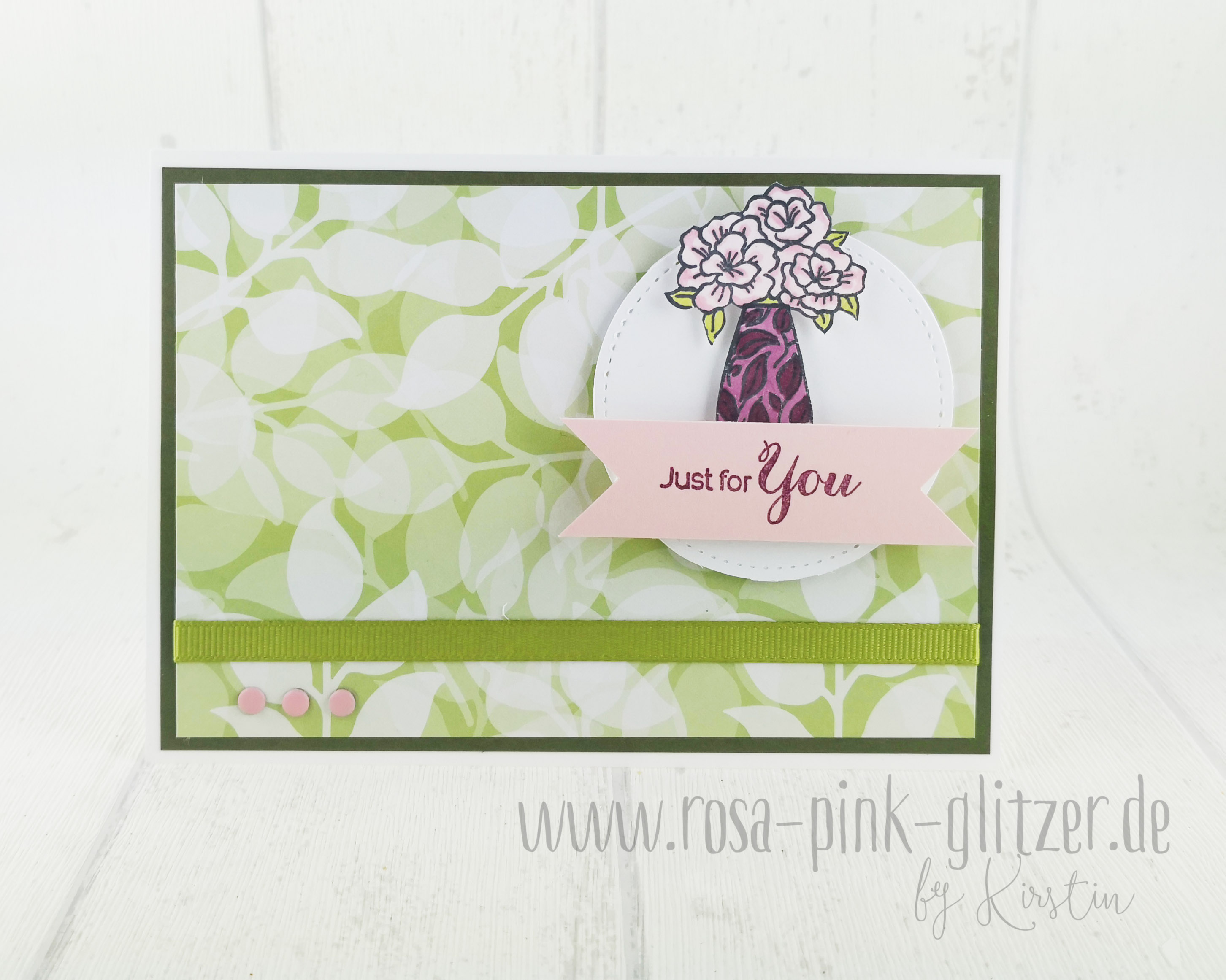 Ich habe den Sketch umgesetzt und dafür das Stempelset „Vibrant Vases“ aus dem neuen Stampin up Frühjahrskatalog genutzt. Ich liebe das Vasenset aus dem Hauptkatalog und hab mir schon oft ein wenig mehr Kombinationsmöglichkeiten gewünscht. Und voilà, als hätte Stampin up mich erhört.