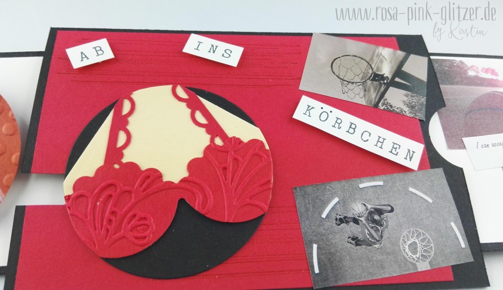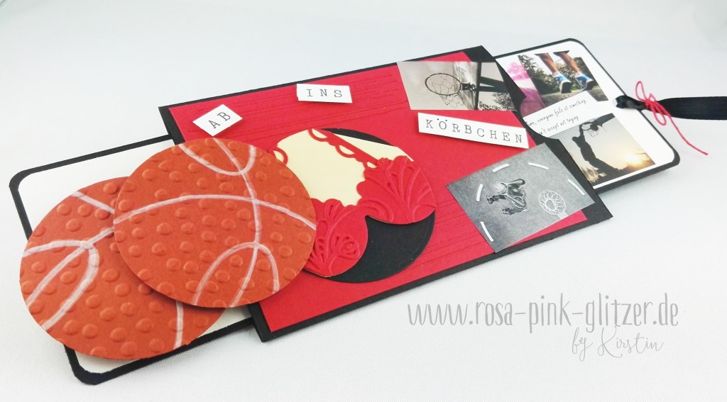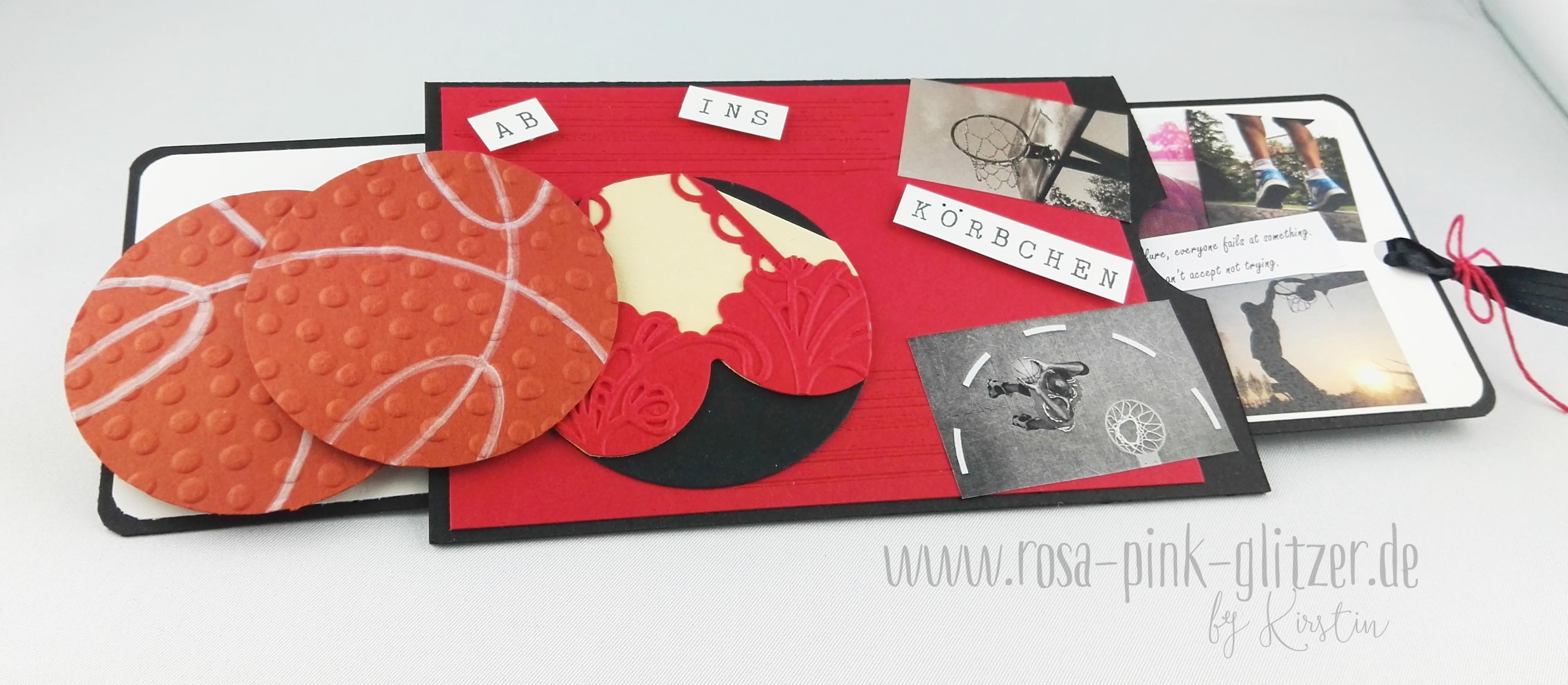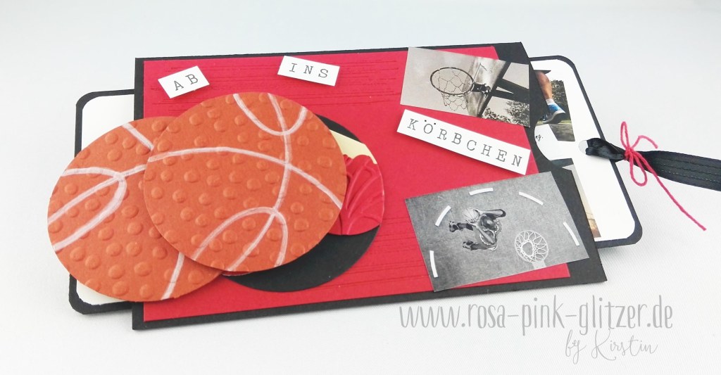 die heutige Karte hab ich bereits vor einiger Zeit gebastelt. Und zwar im Auftrag einer lieben Freundin. Der Empfänger ist, wie unschwer zu erkennen ist, ein Basketballfan und wir wollten einen kleinen Gimmick einbauen. Ich bin ja gespannt, ob’s Euch gefällt…
