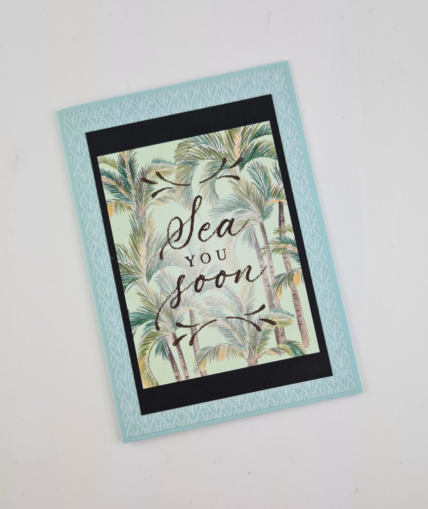 …die hab ich heute für die Global Design Project Challenge gebastelt. Ich hatte da diese Kärtchen aus einem Erinnerungen-und-mehr-Set von Stampin up auf dem Schreibtisch und dann fiel mir der Sketch ein. Kombiniert mit einer gewissen Sehnsucht nach Meer, Urlaub, Ruhe – weg von allen aktuellen Geschehnissen, gab es dann eine ganz schnelle Karte.