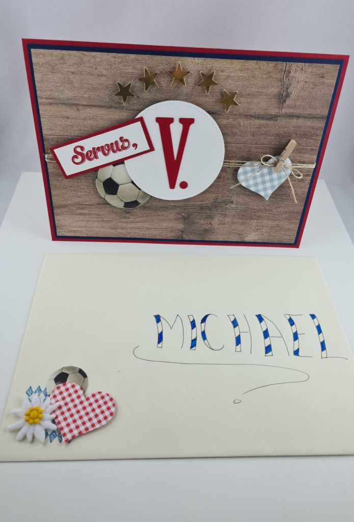 Michael ist ein typischer Münchner und arbeitet jetzt beim FCB. Natürlich gab es einen Abschied und ich durfte die Karte basteln.