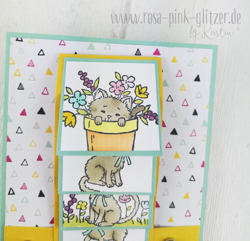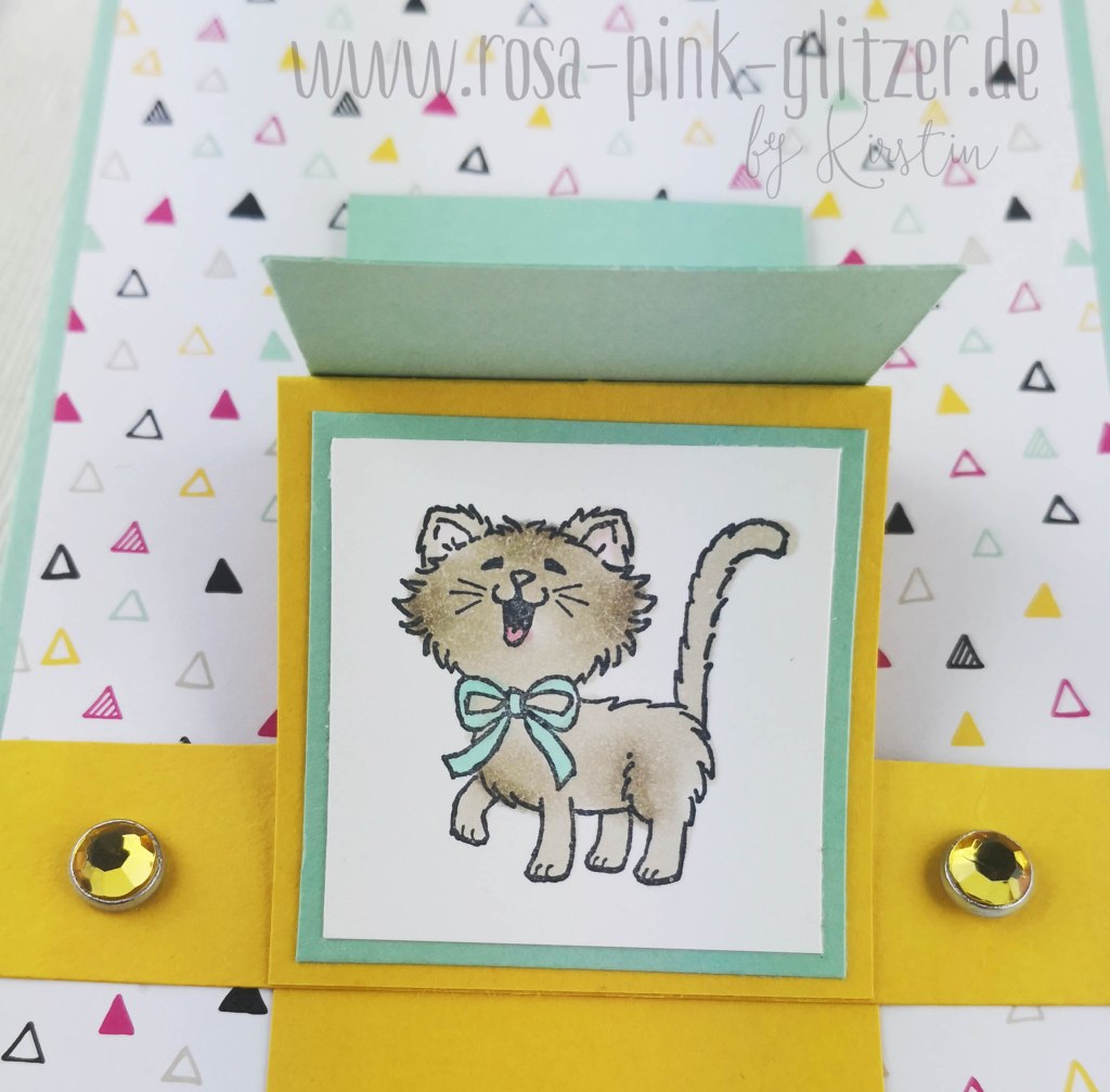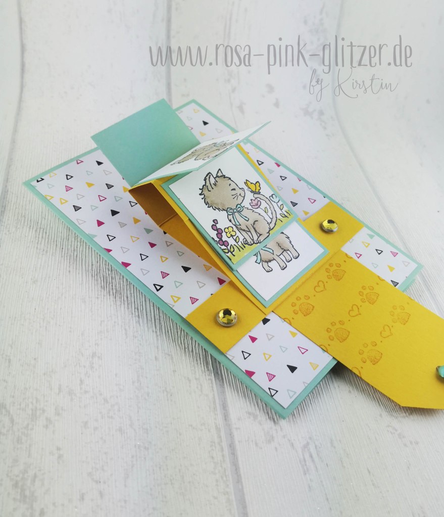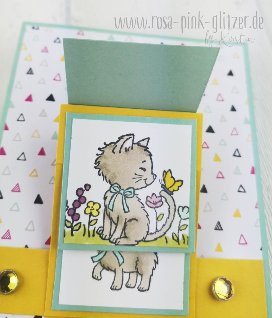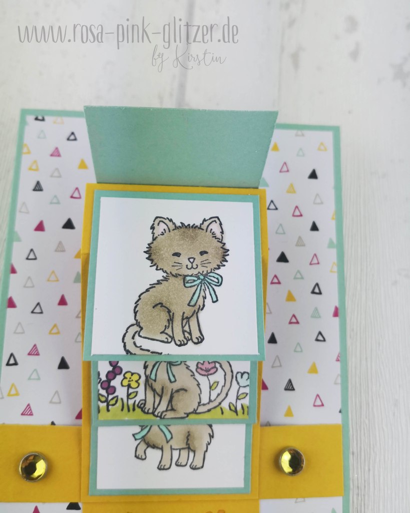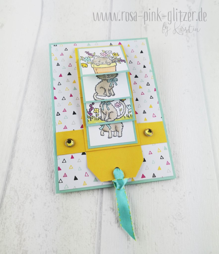 Wenn sich das Tor öffnet, dann lauern dahinter die niedlichen Erdmännchen aus der Sale-a-bration. Der Spruch stammt ebenfalls aus der Sale-a-bration aus dem Stempelset „Liebe Gedanken“.