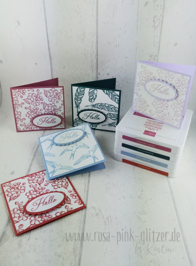 Ich habe für Euch eine Karte gebastelt, bei der ich mit drei verschiedenen Stempelsets aus dem neuen Stampin up Minikatalog sowie der Sale-a-bration gewerkelt hab.