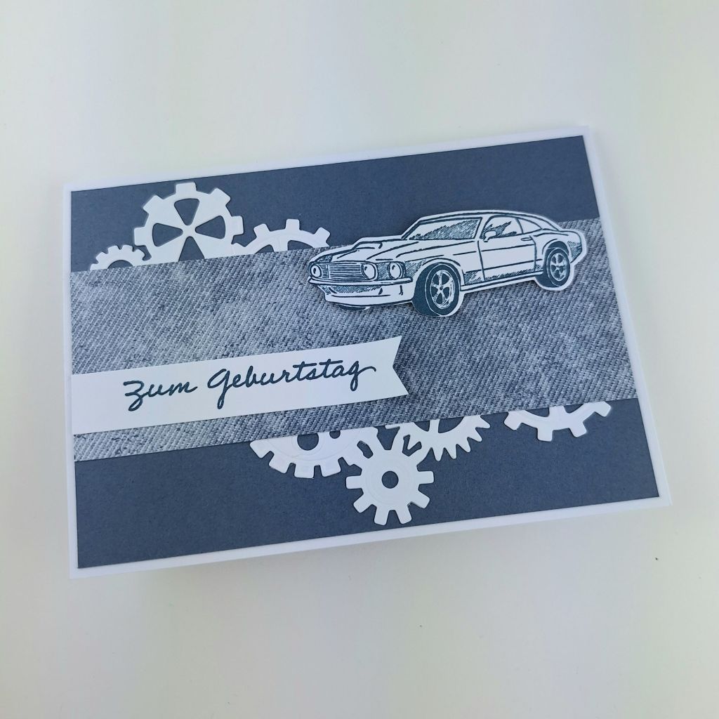 Die Karte hat ein Freund meines Sohnes zum Geburtstag bekommen. Er hat seinen Tag auf der Kartbahn gefeiert, da fand ich das passt.