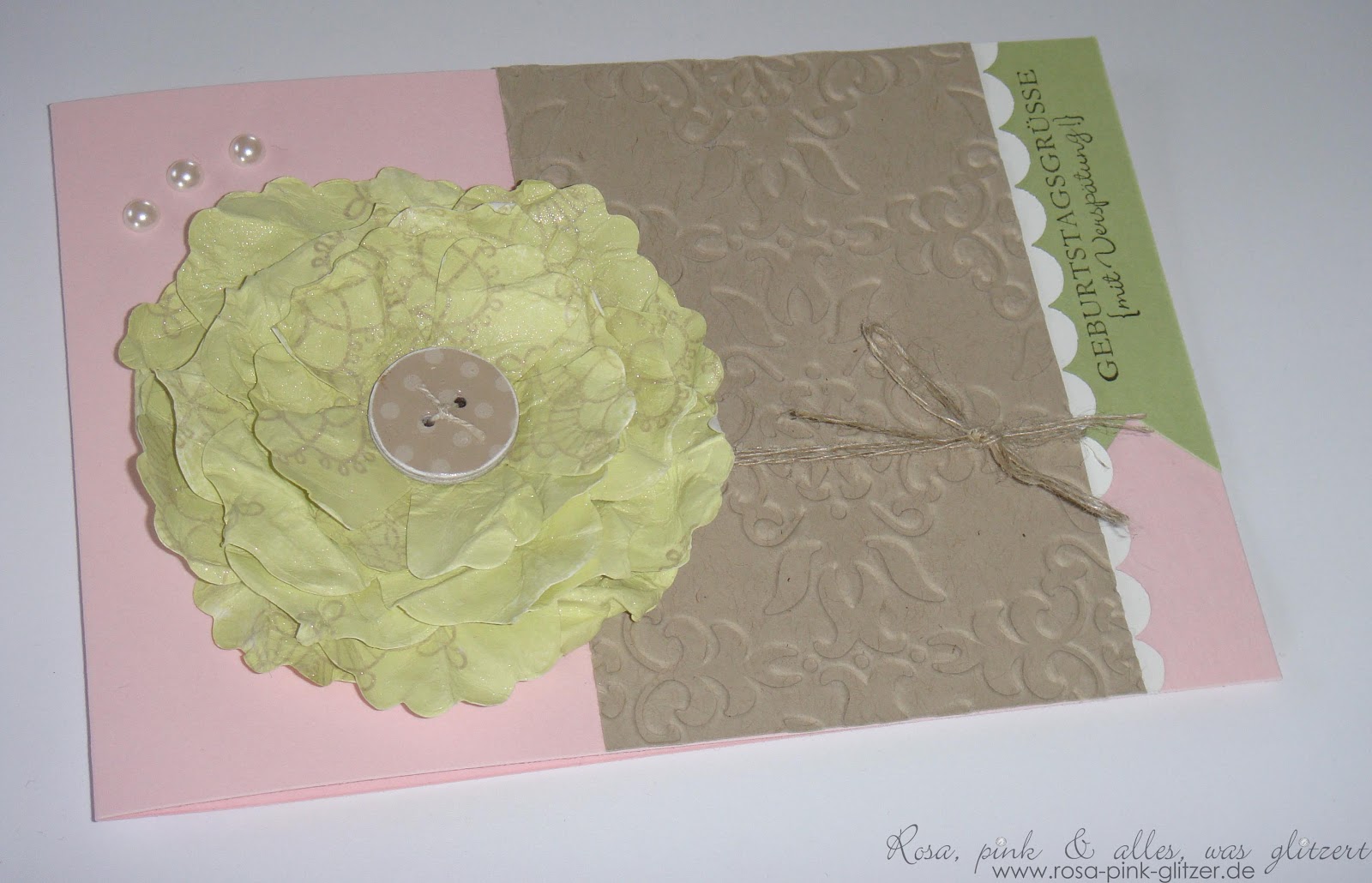 Bei mir ist daraus eine Geburtstagskarte geworden, die auch gleich die Erstellerin der Challenge – Marion – bekommen hat.