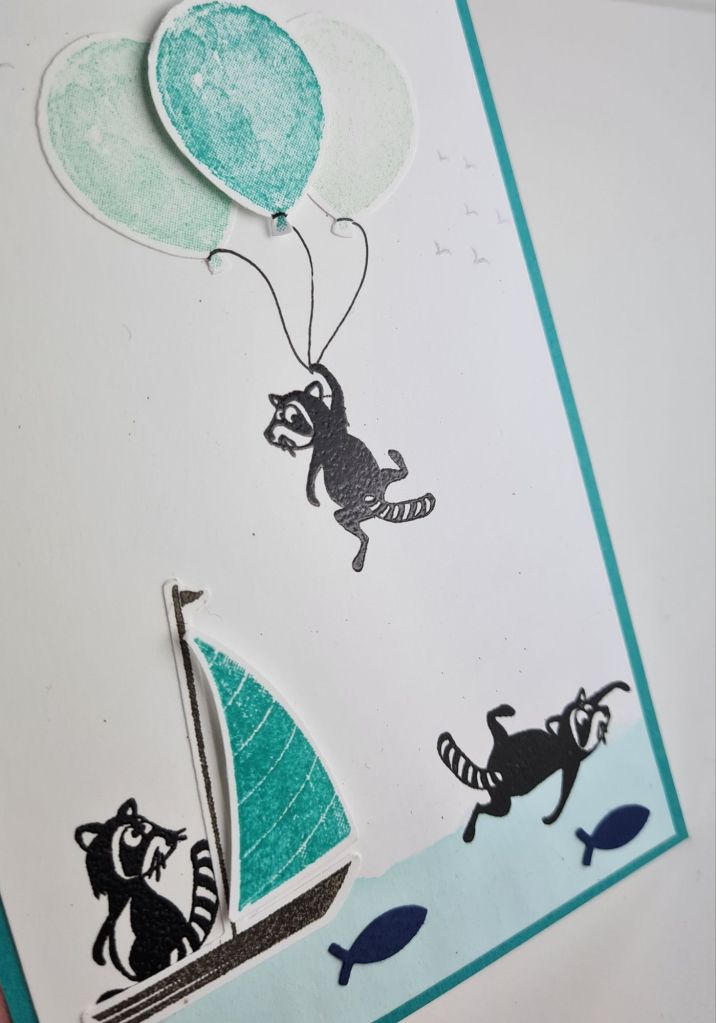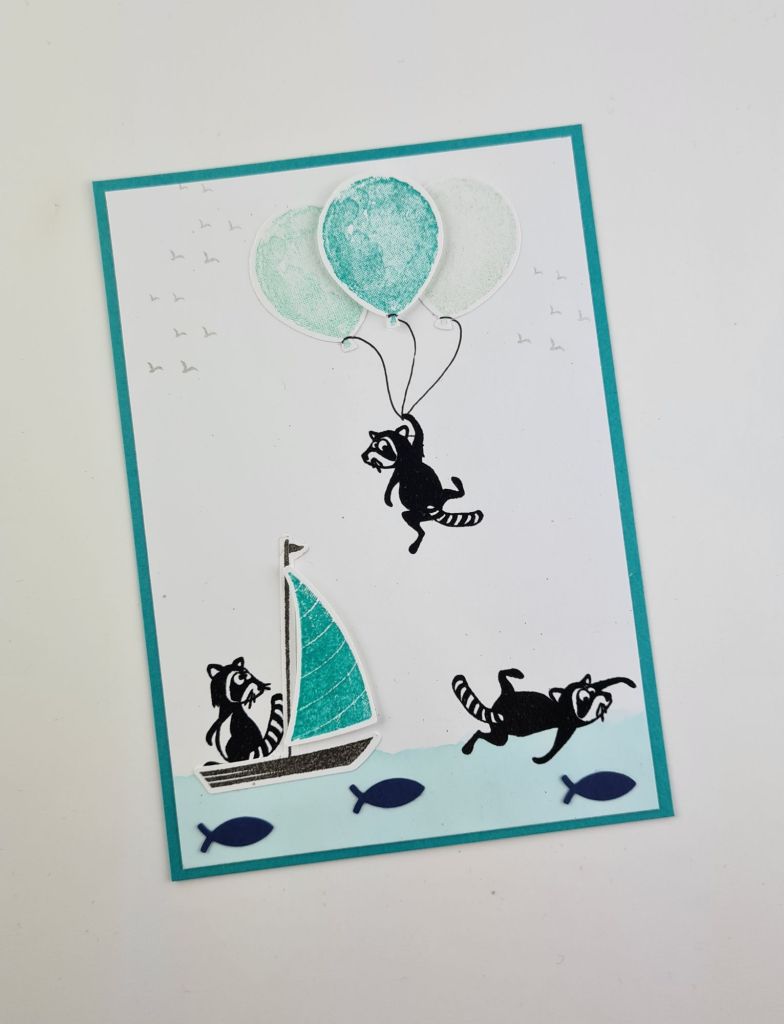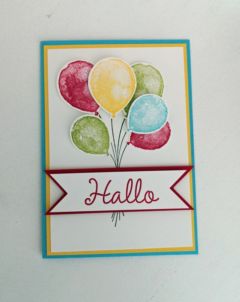 Der Luftballon stammt aus dem Stampin‘ Up! Stempelset „Balloon Builders“, das Schleifchen aus den Thinlits Leckereien-Tüte, natürlich ebenfalls von Stampin‘ Up!.