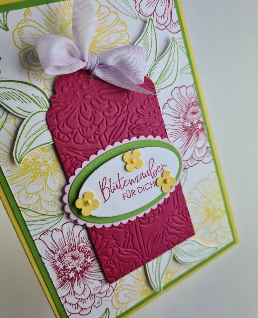 Ich mag diese frühlingshafte Farbexplosion. Und der Prägefolder ist doch toll, oder?