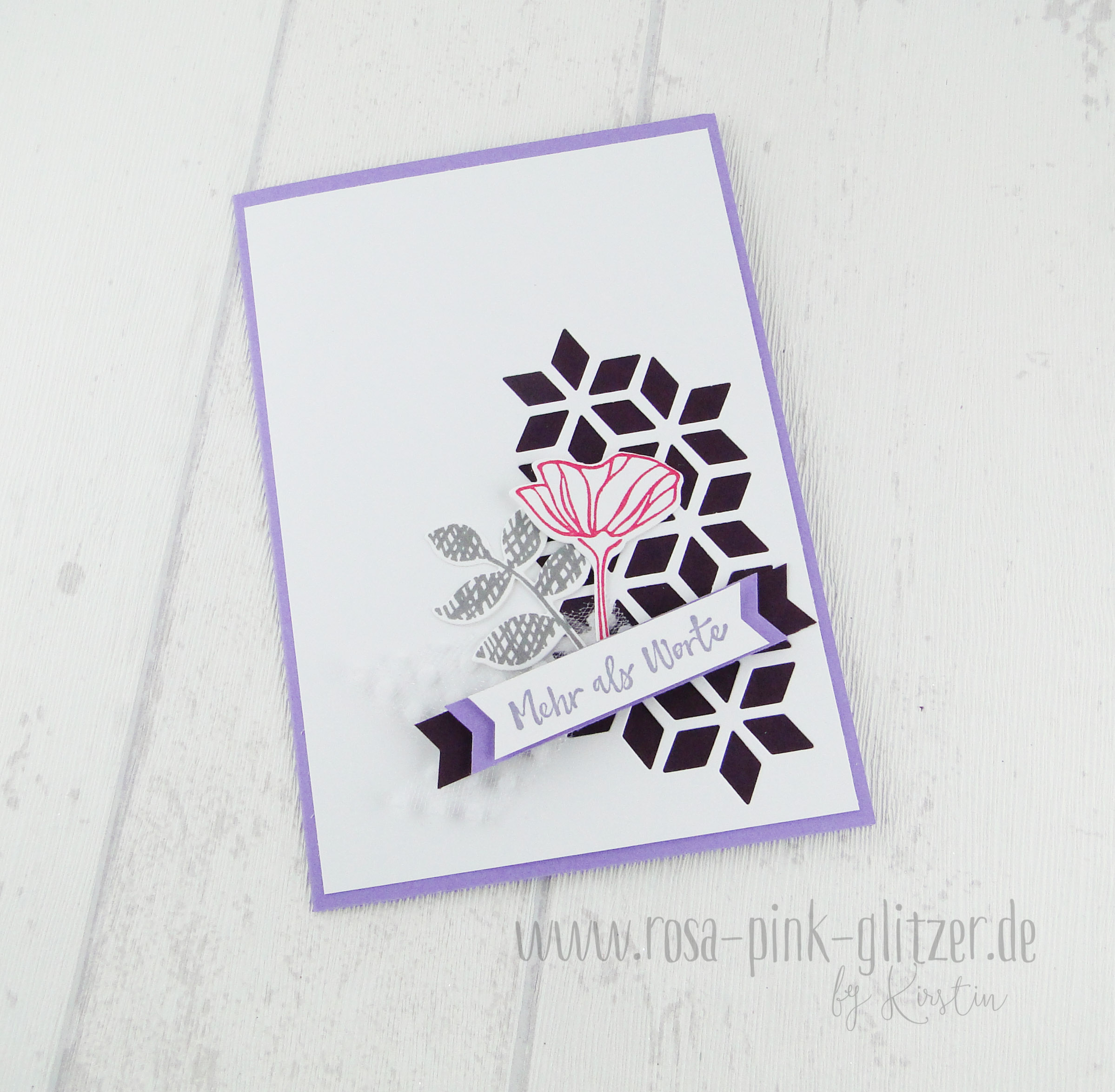 Ich hab zum Stempelset „Bunt gemischt“ gegriffen, das ich damals für die Schauwände bei Stampin up OnStage in Amsterdam bekommen hab. Tolles Set! Damals hatte ich leider die Framelits noch nicht, die sind natürlich zwischenzeitlich auch hier eingezogen. Und so sieht das Werk aus:
