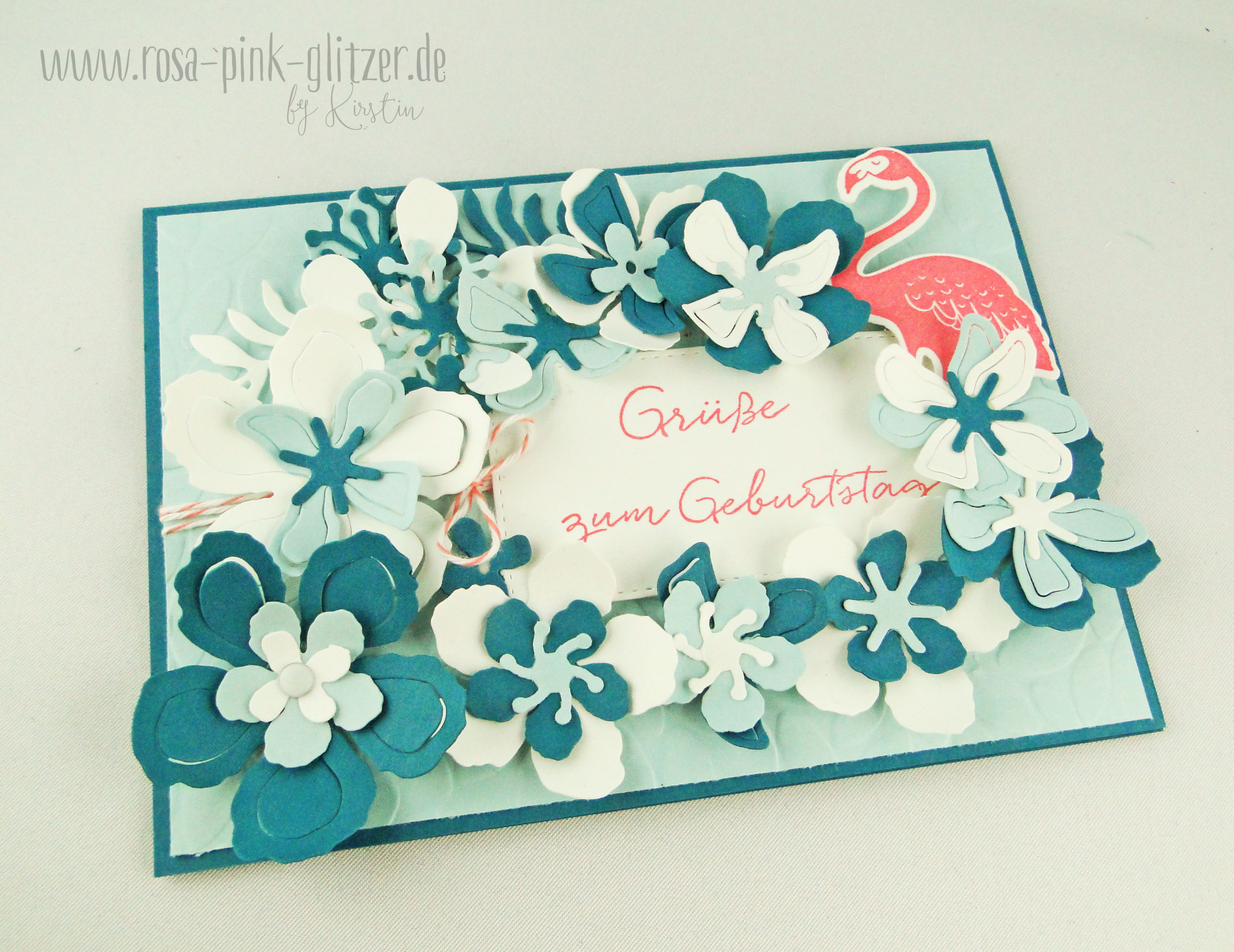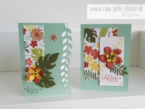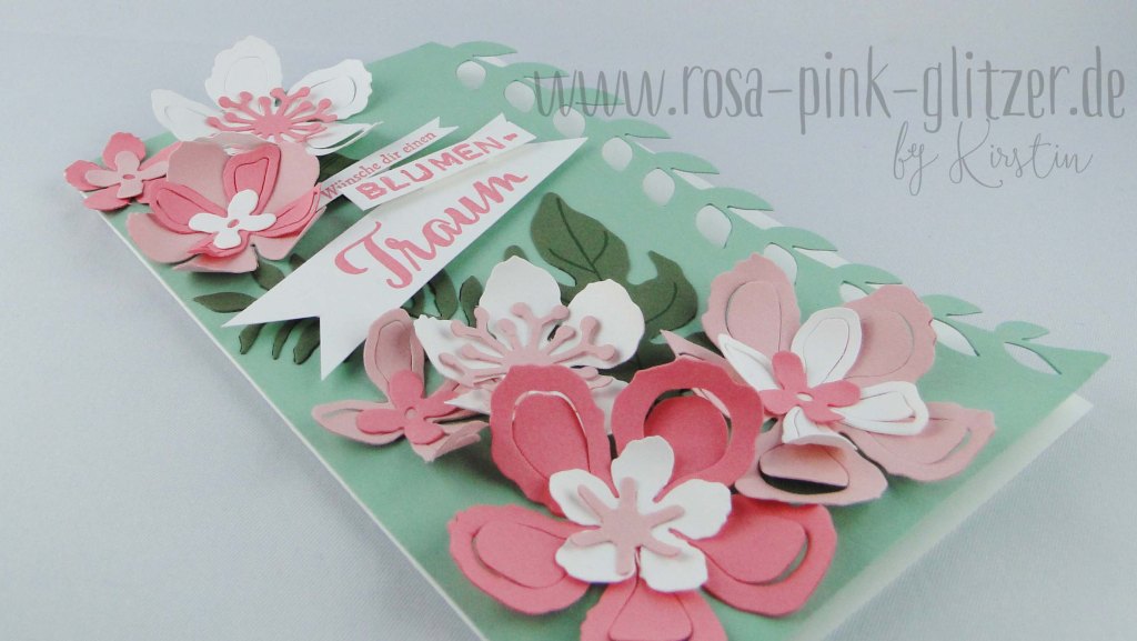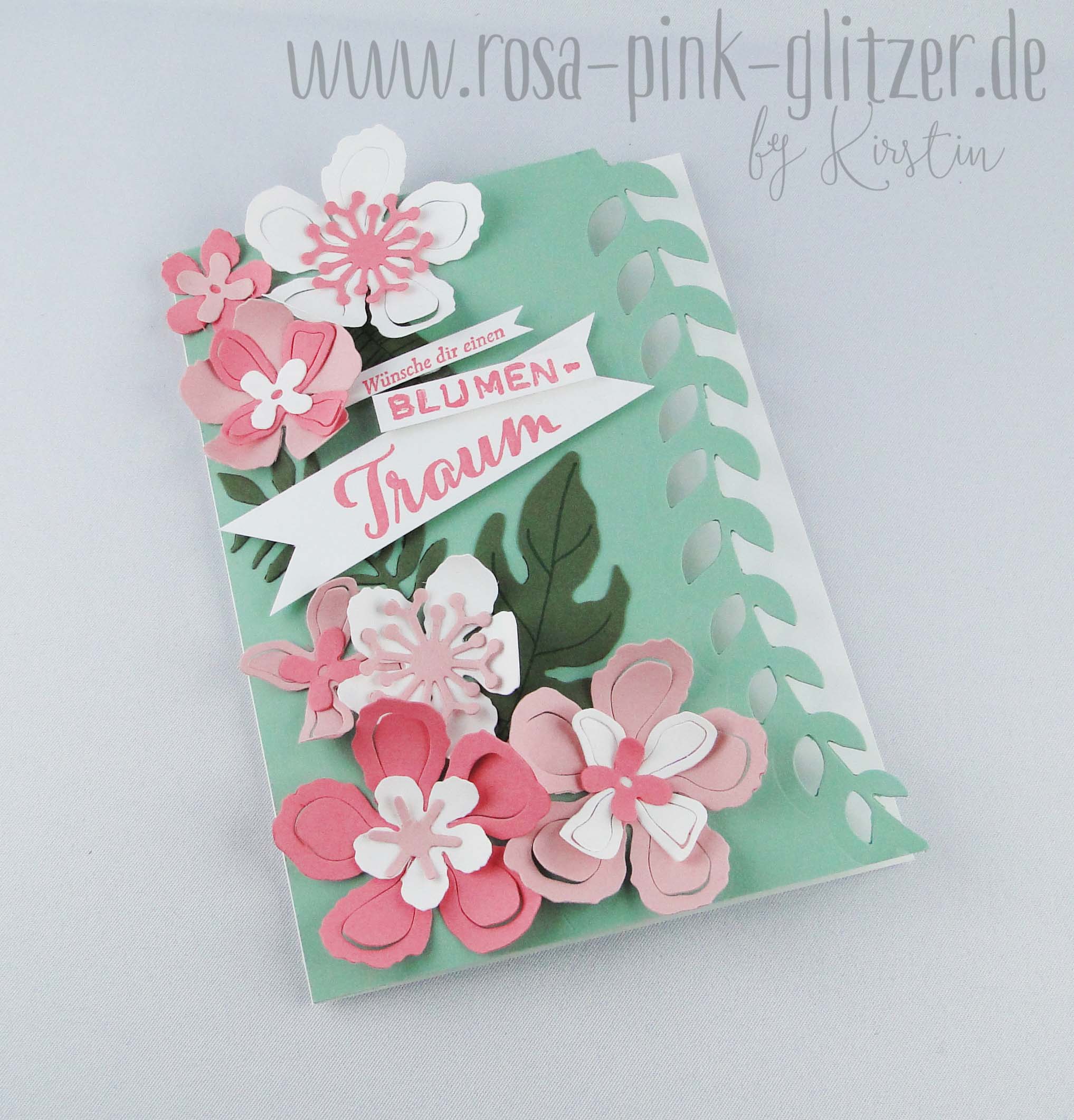 Aber ich fang mal von vorne an. Als ich die Karte für die Farbchallenge von Chrissy bastelte, war ich wieder voll im Botanische-Blumen-Fieber. Ich liebe diese Thinlits, die leider nicht mehr im aktuellen Katalog von Stampin up enthalten sind, immer noch. Und da lagen dann eben noch ganz viele Blüten auf meinem Schreibtisch. So hab ich mal losgelegt und am Ende erkannt: Ok, das war jetzt einfach zuviel. 😀