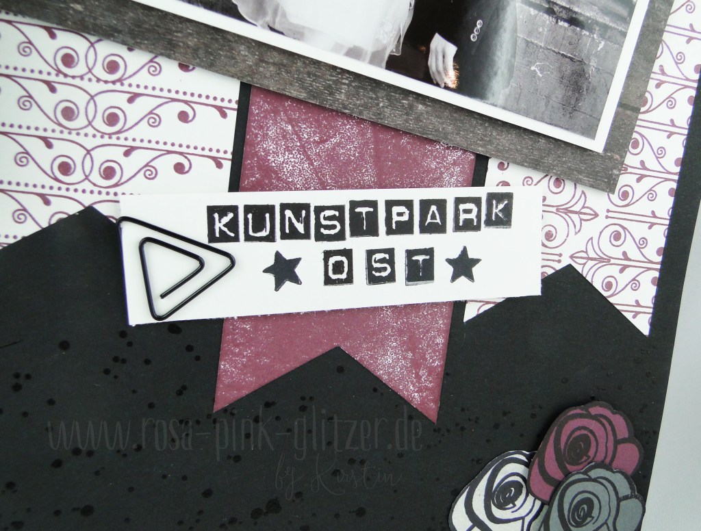 Die Location war im Kunstpark Ost, das hab ich mit dem Labeler Alphabet gestempelt. Und seht Ihr die Klammer, die das Tag hält? Die war ebenfalls in meinem Schauwand-Paket und passt ganz fantastisch wie ich finde.