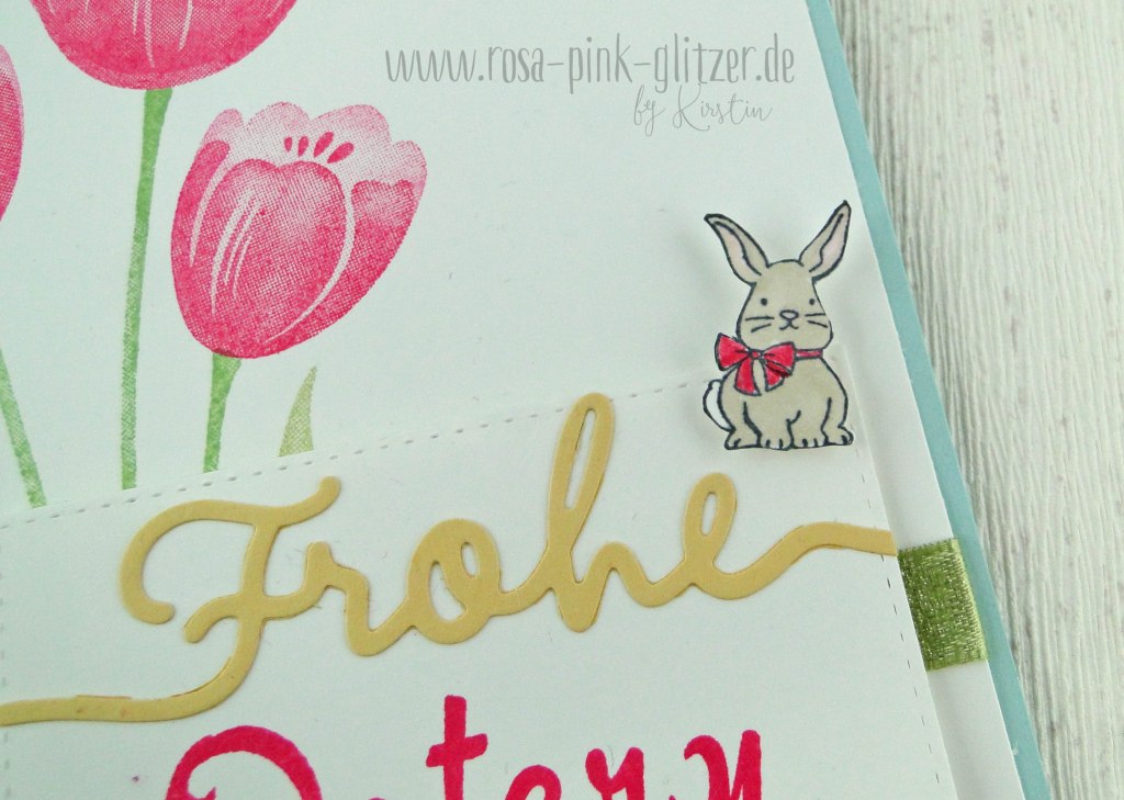Die Hintergrund-Fähnchen sind gestempelt. Das mittlere einfach mit einem Acrylblock, das gibt so einen leicht trashigen Abdruck. Die anderen sind mit den wunderschönen Schnörkeln aus dem Stempelset „Segensfeste“ gestempelt. Wirken auch so ganz fantastisch.