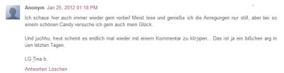 Und Platz 1 geht an Dani mit diesem lieben Kommentar: