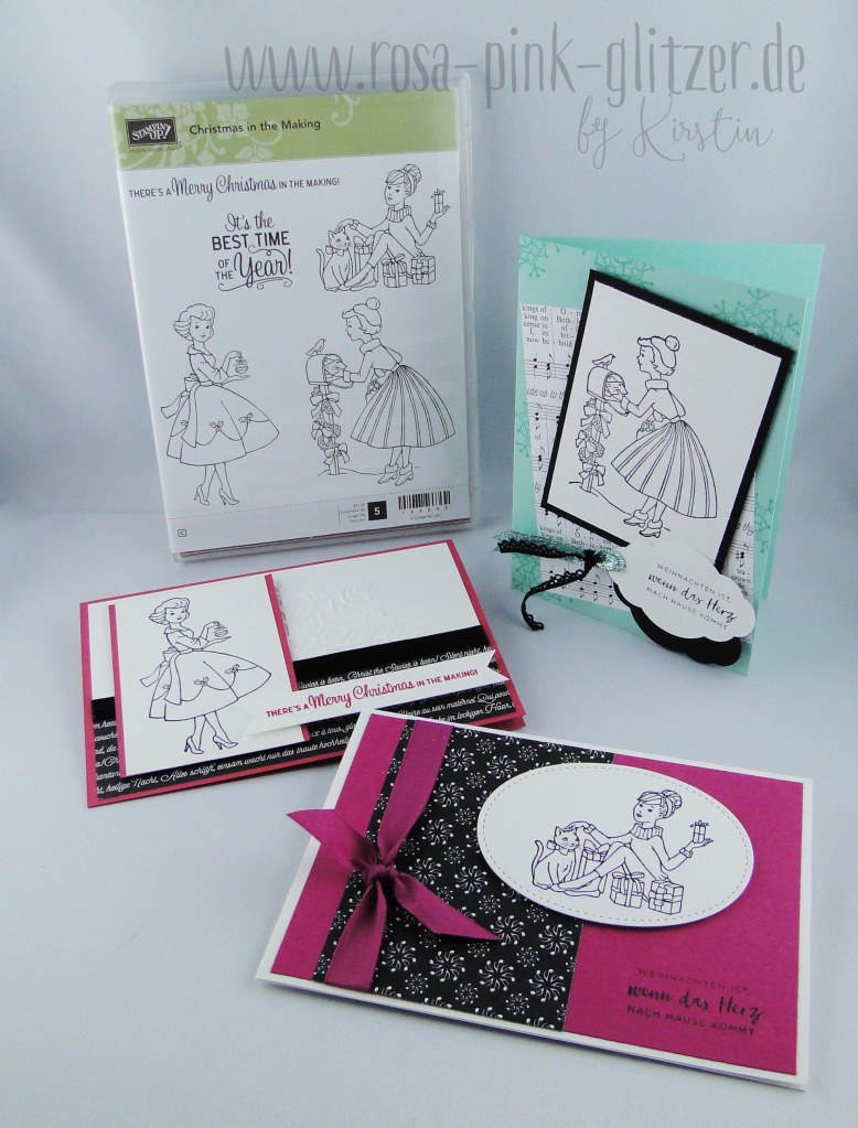 Nachdem ich ja zum Vorsatz hatte, dieses Jahr mit den Weihnachtskarten durch zu sein, zeige ich Euch heute gleich noch ein weihnachtliches Werk. Und zwar eine Karte mit einem meiner Lieblingssets „Christmas in the Making“ aus dem Herbst-Winter-Katalog von Stampin up. Hier hab ich ein wenig experimentiert:
