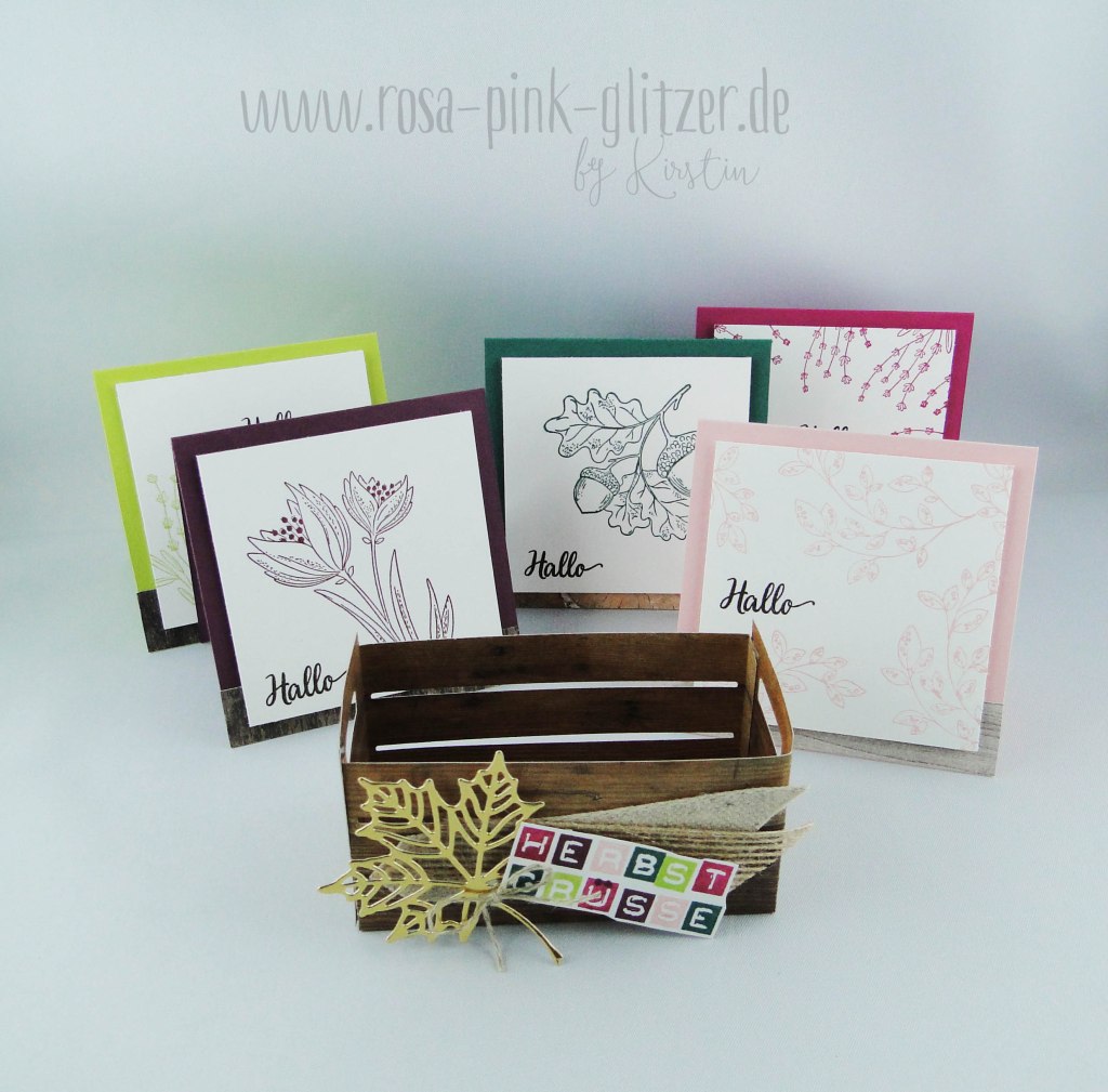 Ich hab ein Set mit Mini-Kärtchen mit dem Stempelset „Count my blessings“ aus dem Stampin up Herbst-Winter-Katalog für Euch. Gesammelt sind sie in der süßen Holzkiste: