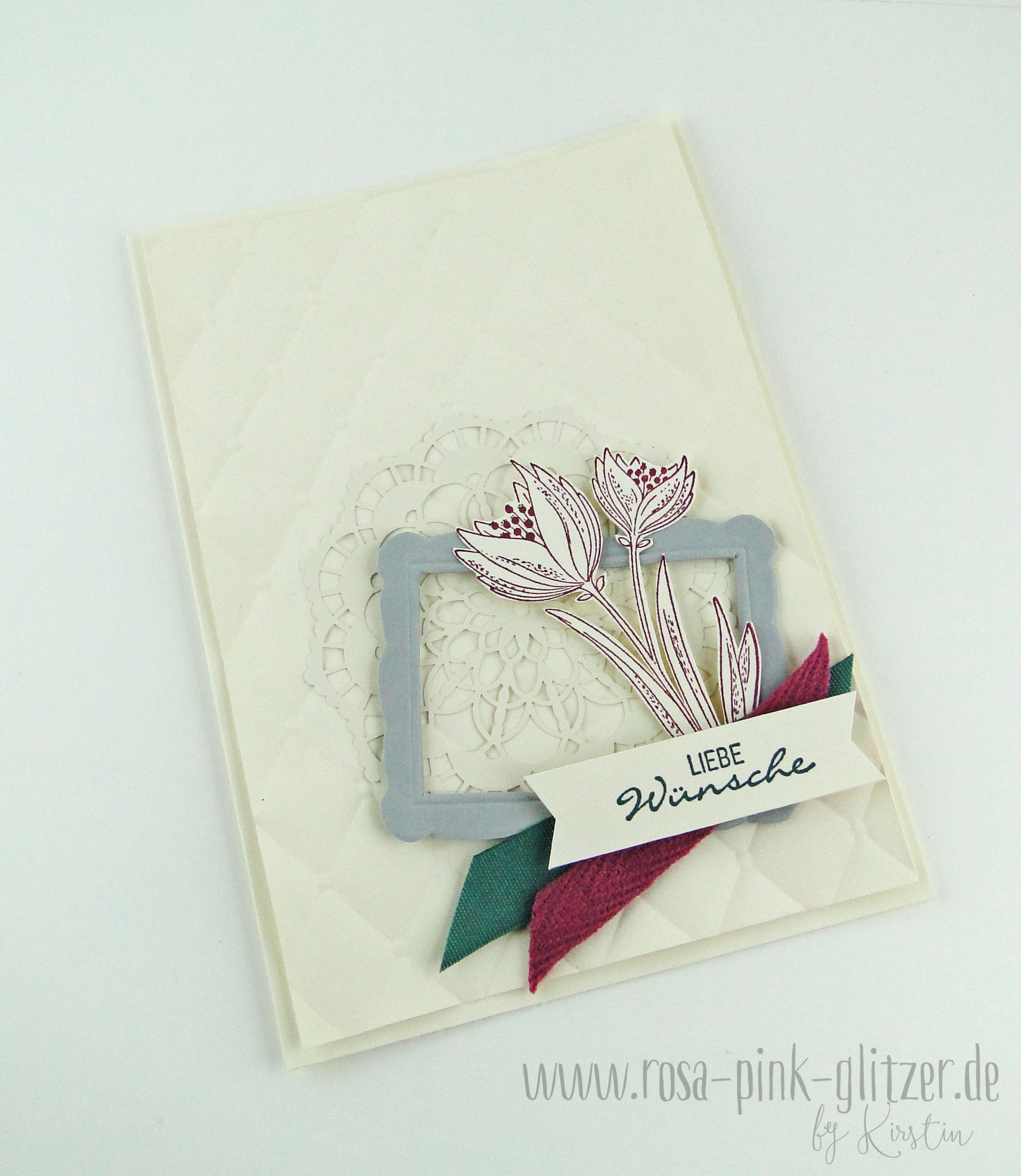 Das hübsche goldene Blatt stammt aus den Thinlits zum Stempelset „Jahr voller Farben“. Mit diesem Set hatte ich eigentlich zuerst ein paar Karten vorbereitet. Es stellte sich dann aber heraus, dass der Bloghop relativ eintönig geworden wäre, denn dieses Set haben viele als Favorit erkoren. So hab ich mir kurzfristig für das Set „Count my blessings“ entschieden.