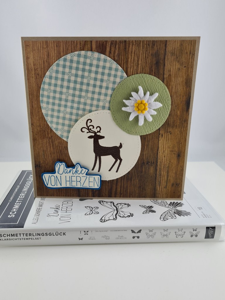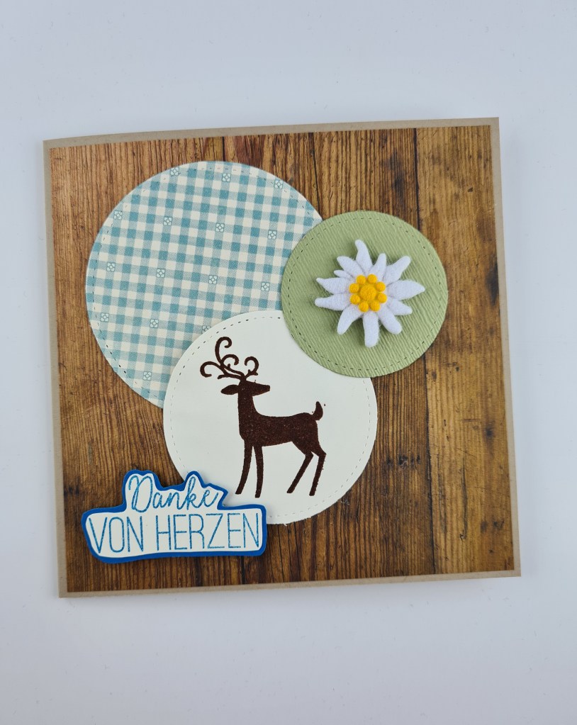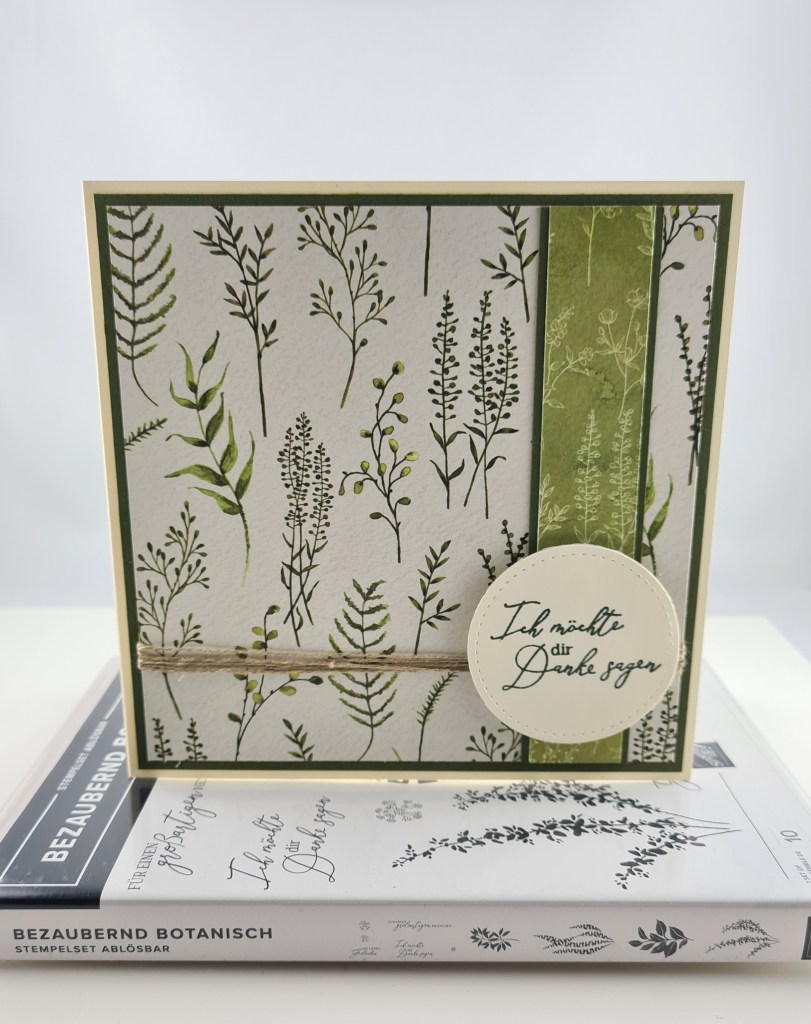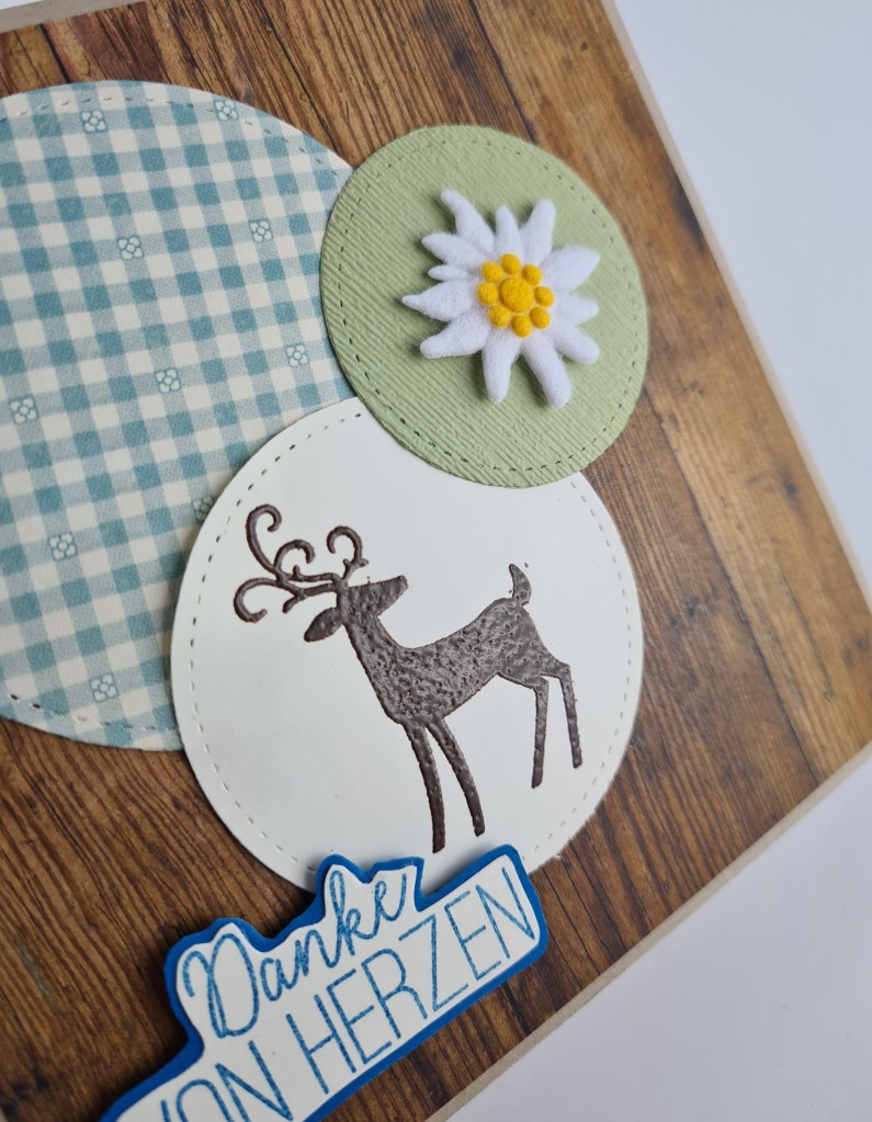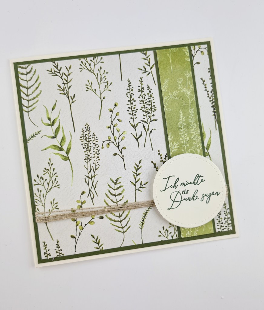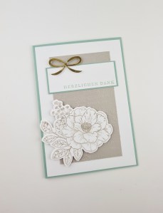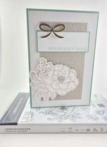Ich hab ziemlich wenig gestempelt, das wunderhübsch geschwungene Danke stammt aus dem Set Gartenzauber.