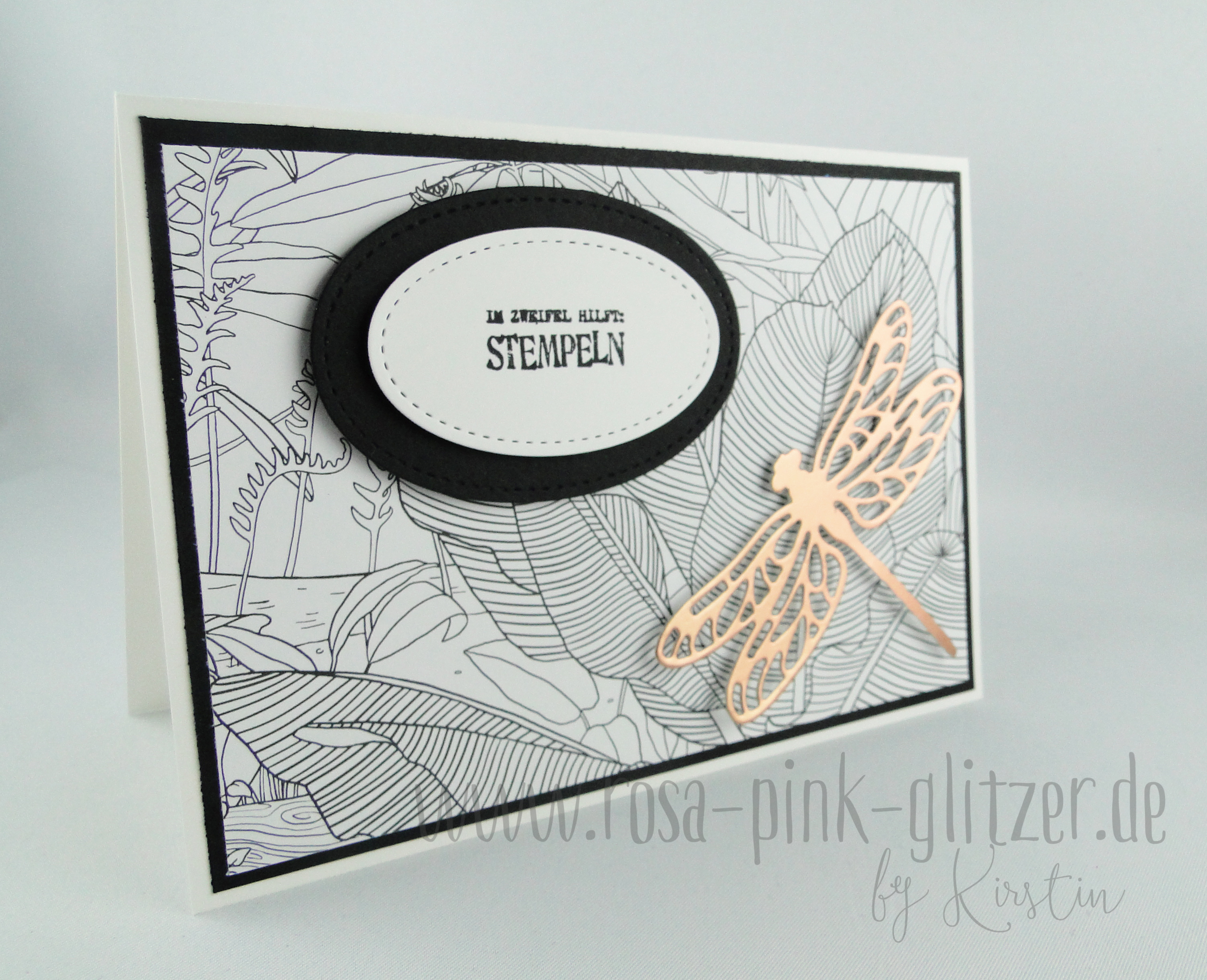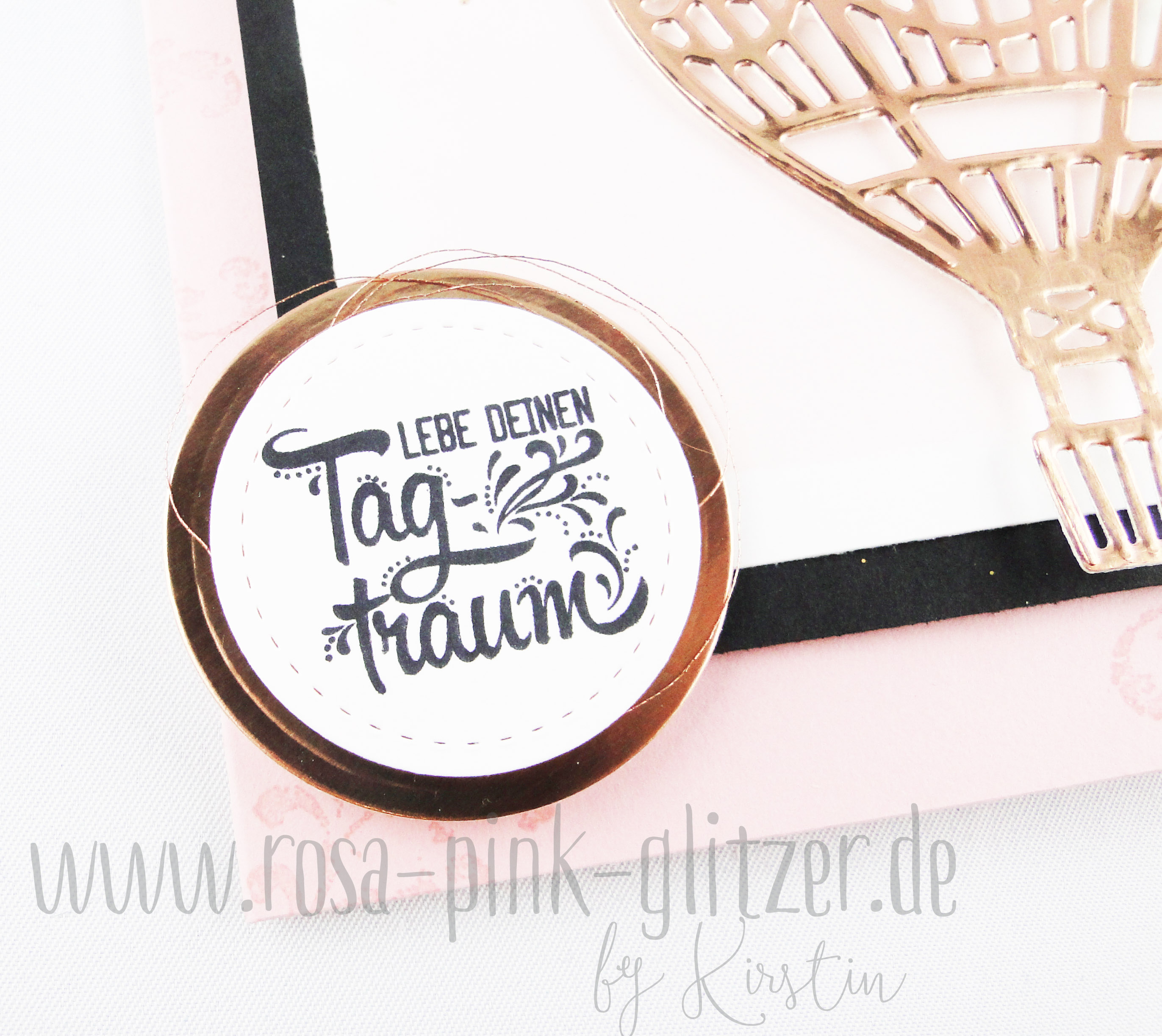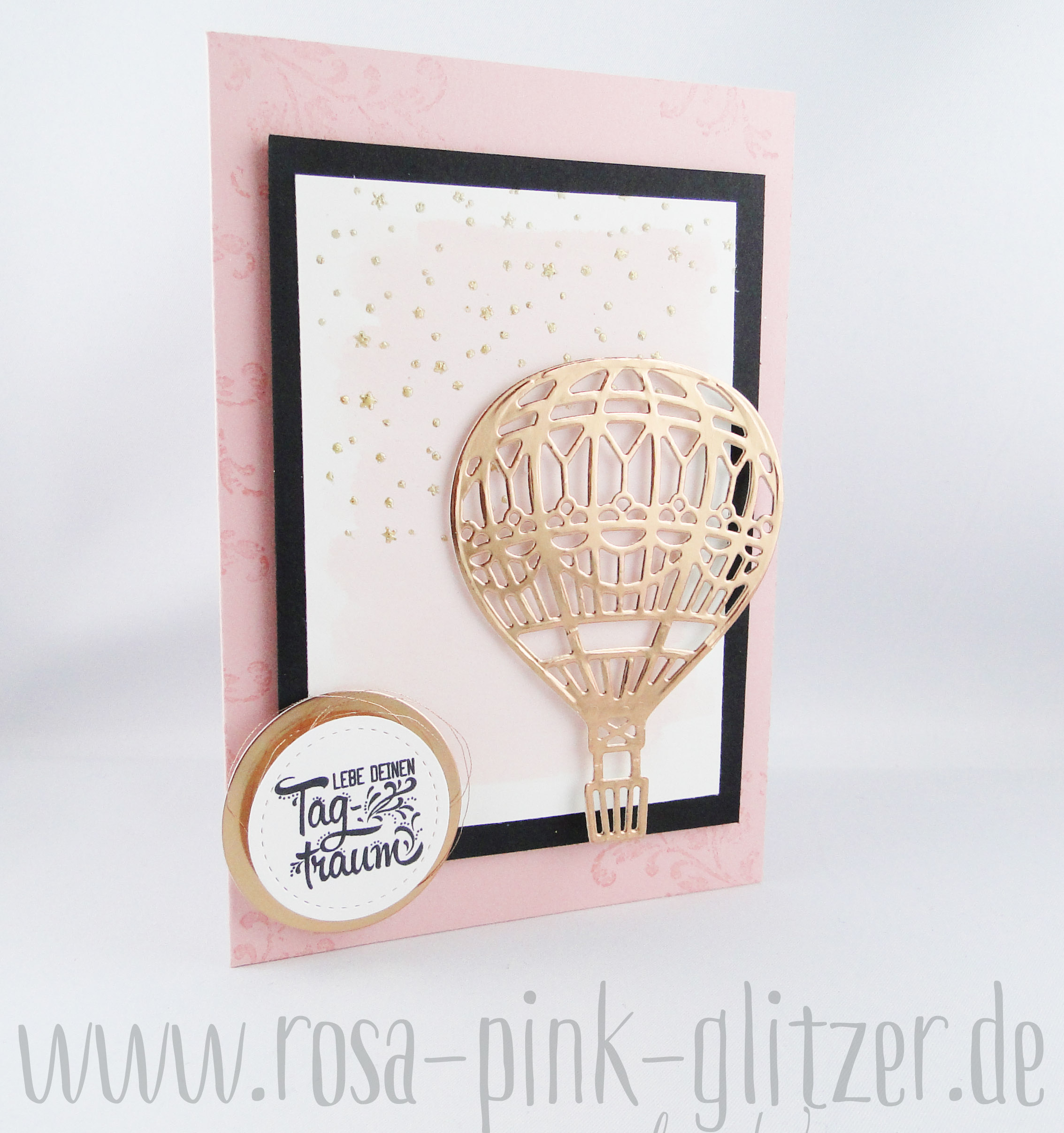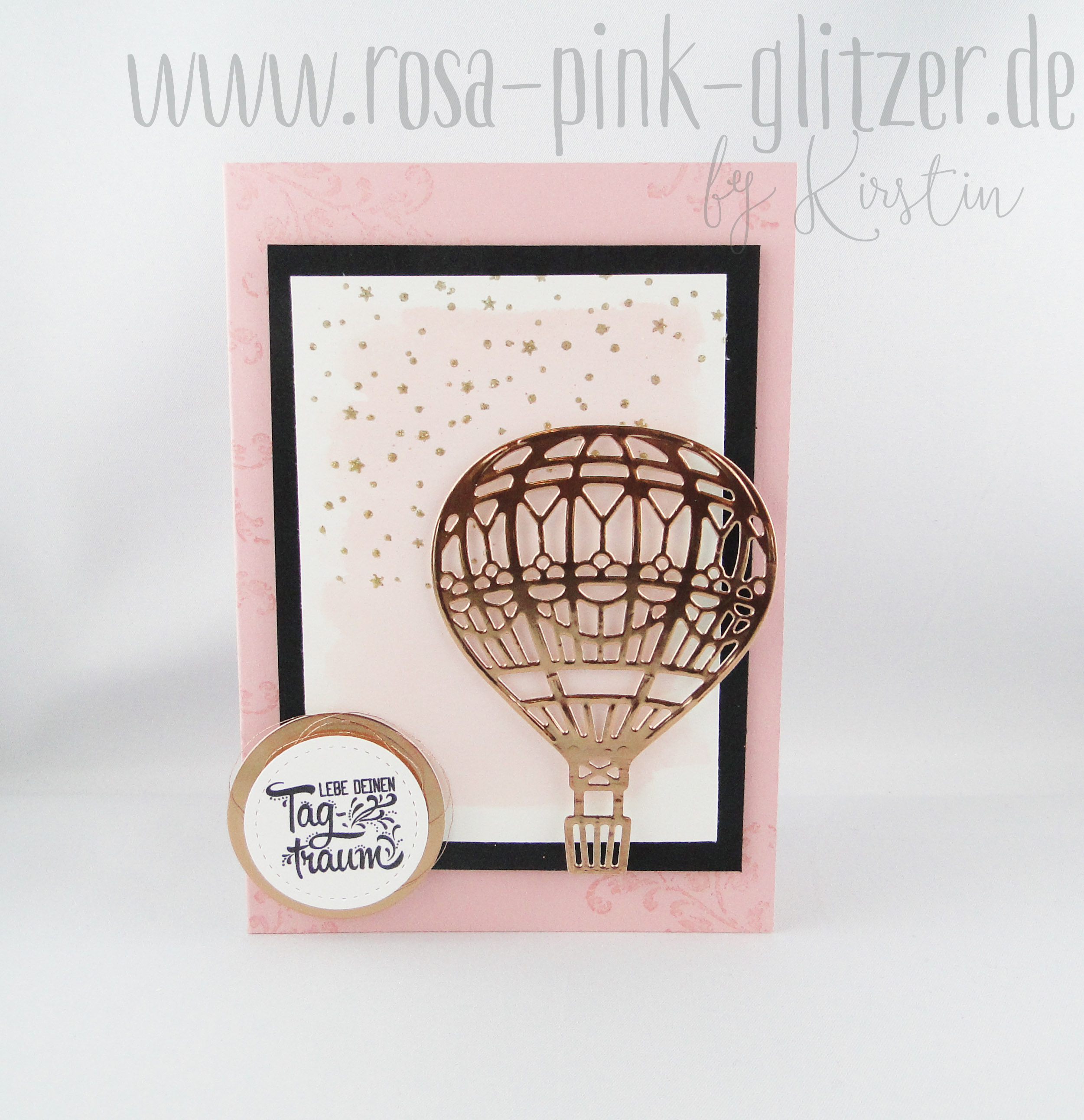 Die Farbkombi hat mich sehr gereizt. Und eigentlich hätte ich grad noch andere Sachen vorher erledigen sollen, aber dann lag da dieser ausgestanzte Ballon in Kupfer. Und irgendwie hatte ich auf einmal eine Idee, die ich dann sofort umsetzen musste. Und das Beste: Das Ergebnis gefiel mir auch noch 😀