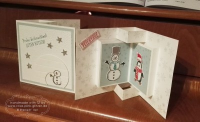 Was kreatives zeige ich Euch heute aber auch noch. Und zwar eine ganz besondere Kartenform. Annemarie hatte die schon mal gezeigt und ich musste sie auch mal ausprobieren. Vor allem, nachdem Saskia, eine ganz liebe Kundin, sich für den Workshop bei ihr eine Karte wünschte, bei der etwas aufklappt, wenn man sie öffnet.