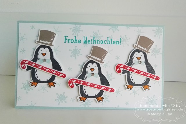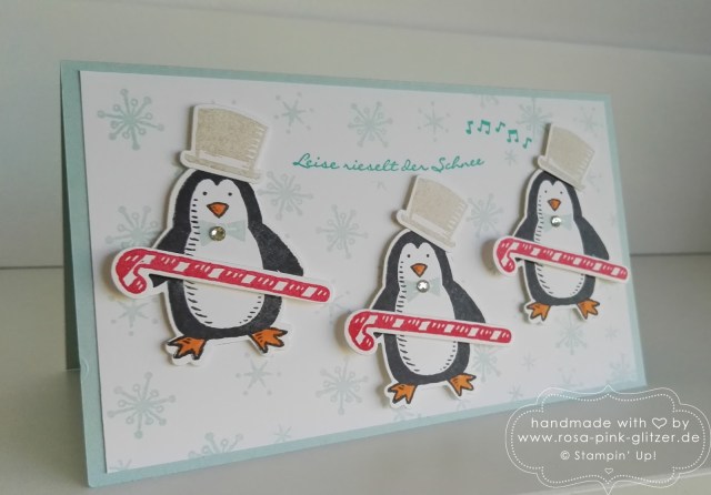Ist der kleine Pinguin nicht zum niederknien? So ein goldiges Kerlchen, wie er da aus dem Iglu guckt. Als Stampin-up-Kenner habt Ihr sicher gleich erkannt, aus welchem Stempelset der Kleine stammt? Genau – „Es schneit“! Wirklich ein Lieblingsset!