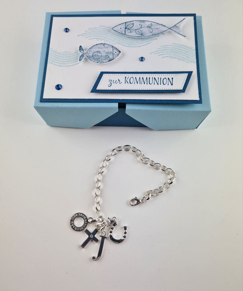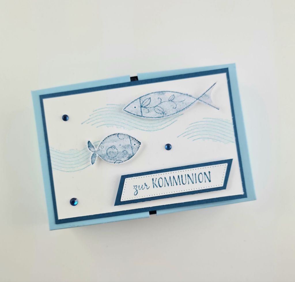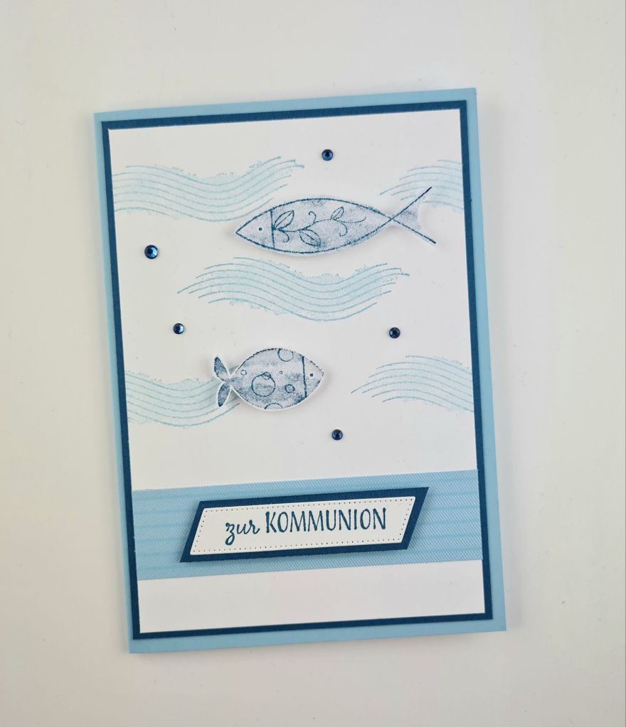 Ich hab mich ehrlicherweise etwas schwer getan, mit dem Stempelset Feierliche Fische ging es dann aber doch.