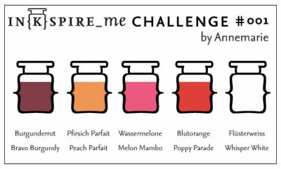 Diese Woche ist bei Inkspire_me mal wieder eine Farb-Challenge dran, ausgedacht von unserer lieben Marion! Je nachdem welche Farbe Ihr verstärkt einsetzt, können die Projekte sommerlich oder auch schon herbstlich wirken.