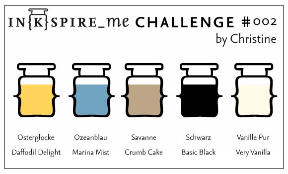 Hallo und willkommen zu einer neuen Fabchallenge bei Inkspire_me. Diesmal dürft Ihr Euch mit meinen Farben austoben. Ich hoffe, sie gefallen Euch. Ist ganz zart diese Woche und passend dazu hab ich eine Babykarte für einen kleinen Jungen gebastelt. Bin gespannt, was Ihr draus macht und freu mich schon, Eure Werke zu sehen!