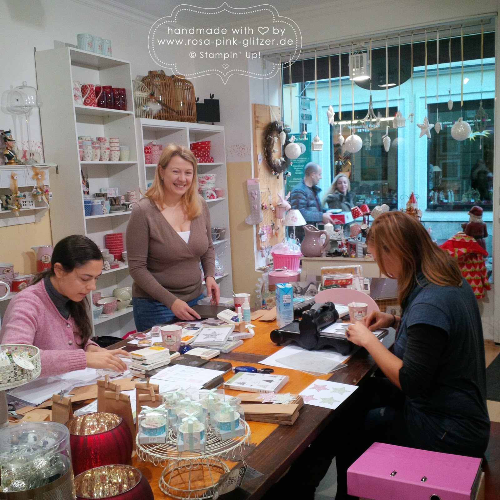 Bereits im November fand mein erster Stampin‘ Up! Workshop bei Fräulein Moni in Landshut statt. Fräulein Moni alias Monica betreibt in der Landshuter Altstadt einen wunderschönen Laden, der Euch begeistern wird. Ein perfektes Ambiente für einen schönen Bastelworkshop. Der Termin am Freitag vormittag war wohl nicht optimal, daher war es ein sehr kleiner aber auch sehr feiner Workshop. Aber ich lass am besten einfach die Bilder sprechen: